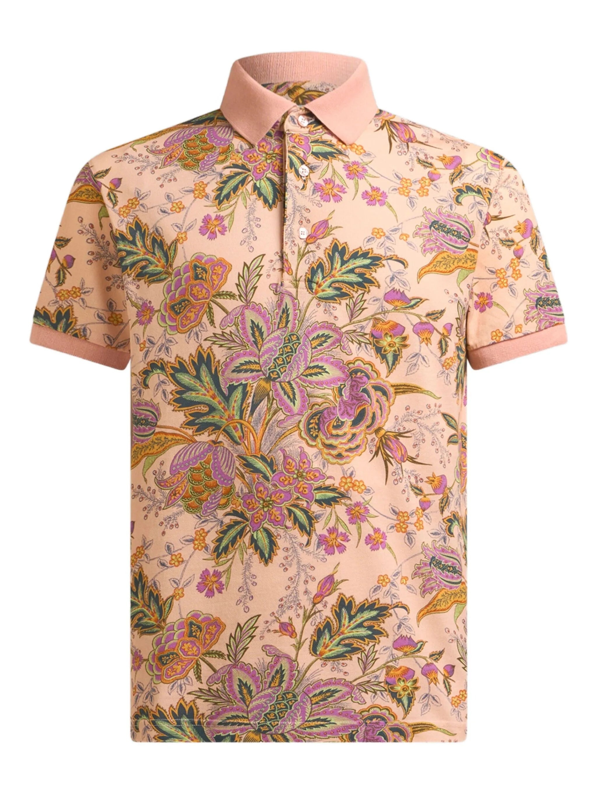 salmon pink front button placket ribbed trim polo collar short sleeves - Color: PINK/GREEN - Made in: Italy - Designer Style ID: AK942 MRMD0004 X0870 Composition and care Outer Composition Cotton: 100.0%