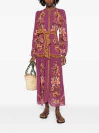 pink floral print belt long sleeves button fastening tiered skirt - Color: PINK - Made in: India - Designer Style ID: 344432 26030 Composition and care Outer Composition Viscose: 100.0%, Lining Composition Viscose: 100.0%