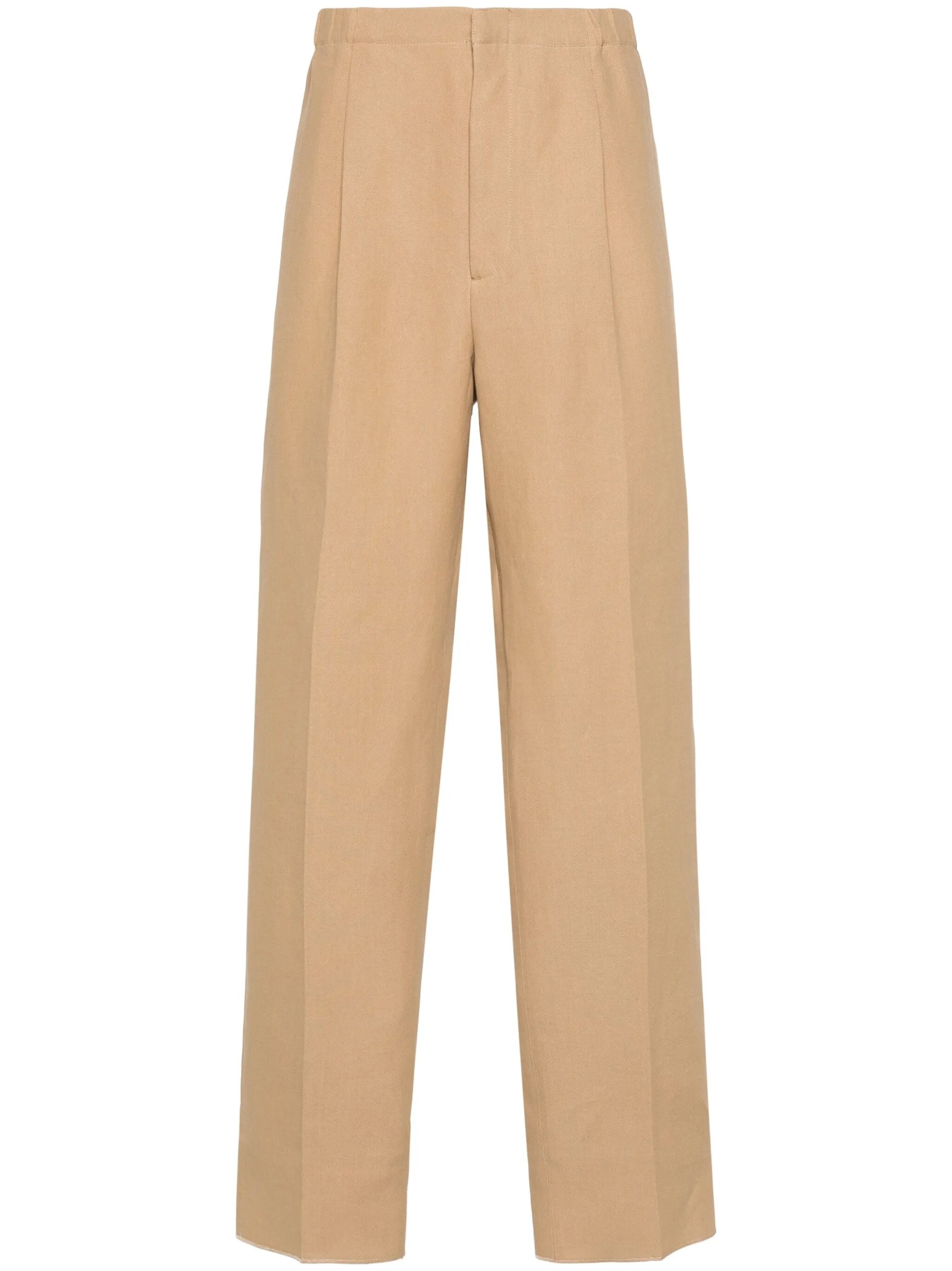beige canvas elasticated waistband two side slit pockets dart detailing pressed crease straight leg two rear welt pockets mini logo tag to the rear concealed front button, hook and zip fastening - Color: NEUTRALS - Made in: Italy - Designer Style ID: AR96 FB0979 F1MTK Composition and care Outer Composition Paper: 100.0%, Lining Composition Viscose: 100.0%