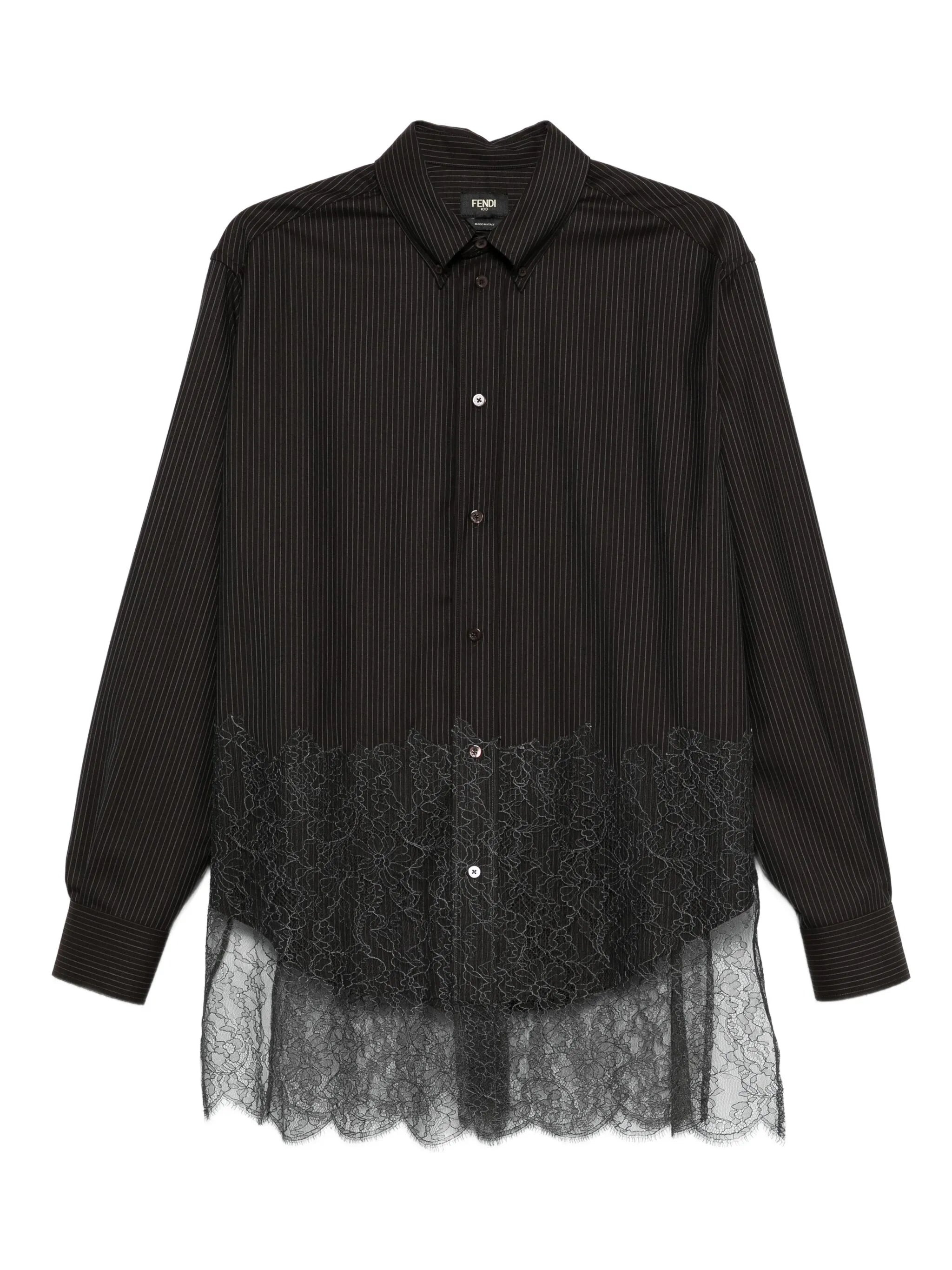 brown striped lace detail button fastening long sleeves classic collar - Color: BROWN - Made in: Italy - Designer Style ID: AVK1 FS1332 F0DHP Composition and care Polyamide: 51%, Viscose: 49%, Wool: 100.0%, Mother Of Pearl: 100%
