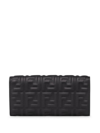 Have you ever had a wallet that looked so good you wanted to show it to everyone? Thanks to a detachable gold plated chain shoulder strap, this black lambskin Baguette continental wallet from Fendi can now also act as a clutch. Wear it with pride. Featuring gold plated hardware, a monogram pattern, an embossed finish, - depth: 2.0 centimetres, height: 10.0 centimetres, strap: 55.0 centimetres, width: 19.0 centimetres - Color: BLACK - Made in: Italy - Designer Style ID: AAJD 8M0365 F0KUR Composition and care Outer Composition Lamb Skin: 100%, Outer Composition Gold Plated Metal: 100%