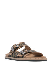 sand brown/tobacco brown calf leather canvas signature FF-pattern print two buckle-strap fastenings open toe flat rubber sole slip-on style - heel: 2.5 centimetres, sole height: 2.0 centimetres - Color: BROWN - Made in: Italy - Designer Style ID: AJZF 7X1604 F1ICN Composition and care Outer Composition Calf Leather: 100.0%, Lining Composition Calf Leather: 100.0%, Sole Composition Rubber: 100.0%, Outer Composition Fabric: 100.0%