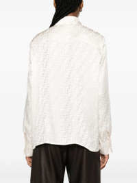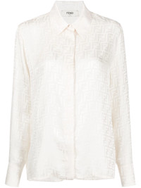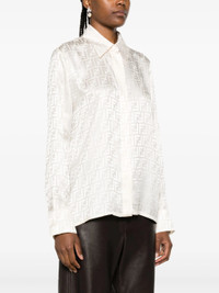 cream white silk patterned jacquard FF motif pointed flat collar drop shoulder concealed front button fastening long sleeves curved hem - Color: NEUTRALS - Made in: Italy - Designer Style ID: AJ0Z FS8140 F1M2A Composition and care Silk: 100.0%