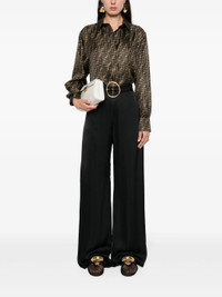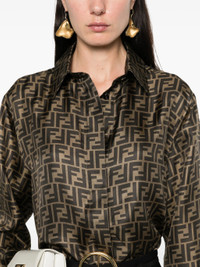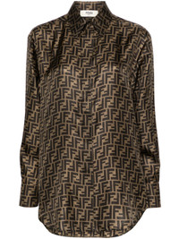 tobacco brown/black silk satin finish all-over FF-logo print classic collar long sleeves with buttoned cuffs fabric-covered buttons curved hem concealed front button fastening - Color: BROWN - Made in: Italy - Designer Style ID: A8G3 FS8107 F118W Composition and care Silk: 100.0%