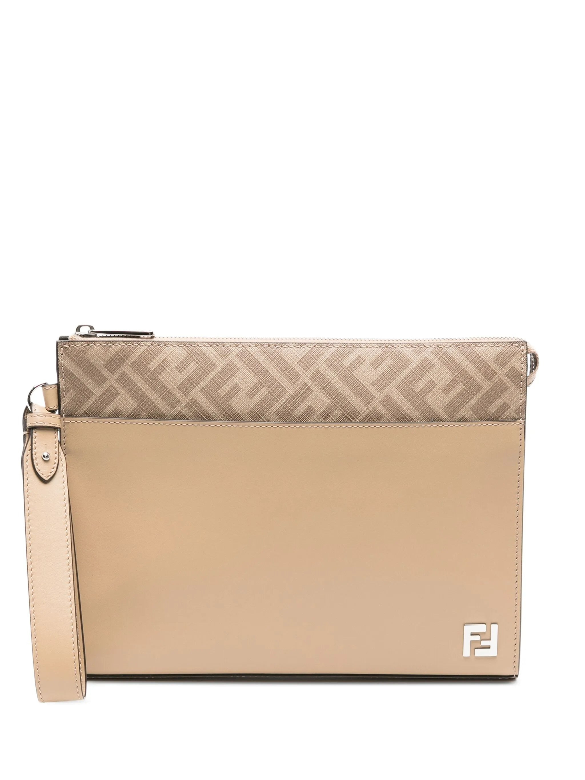 beige calf leather zip fastening FF motif panel metallic logo detachable wrist strap - depth: 5.0 centimetres, height: 20.0 centimetres, width: 27.0 centimetres - Color: NEUTRALS - Made in: Italy - Designer Style ID: AV83 7VA491 F19VE Composition and care Outer Composition Calf Leather: 100.0%