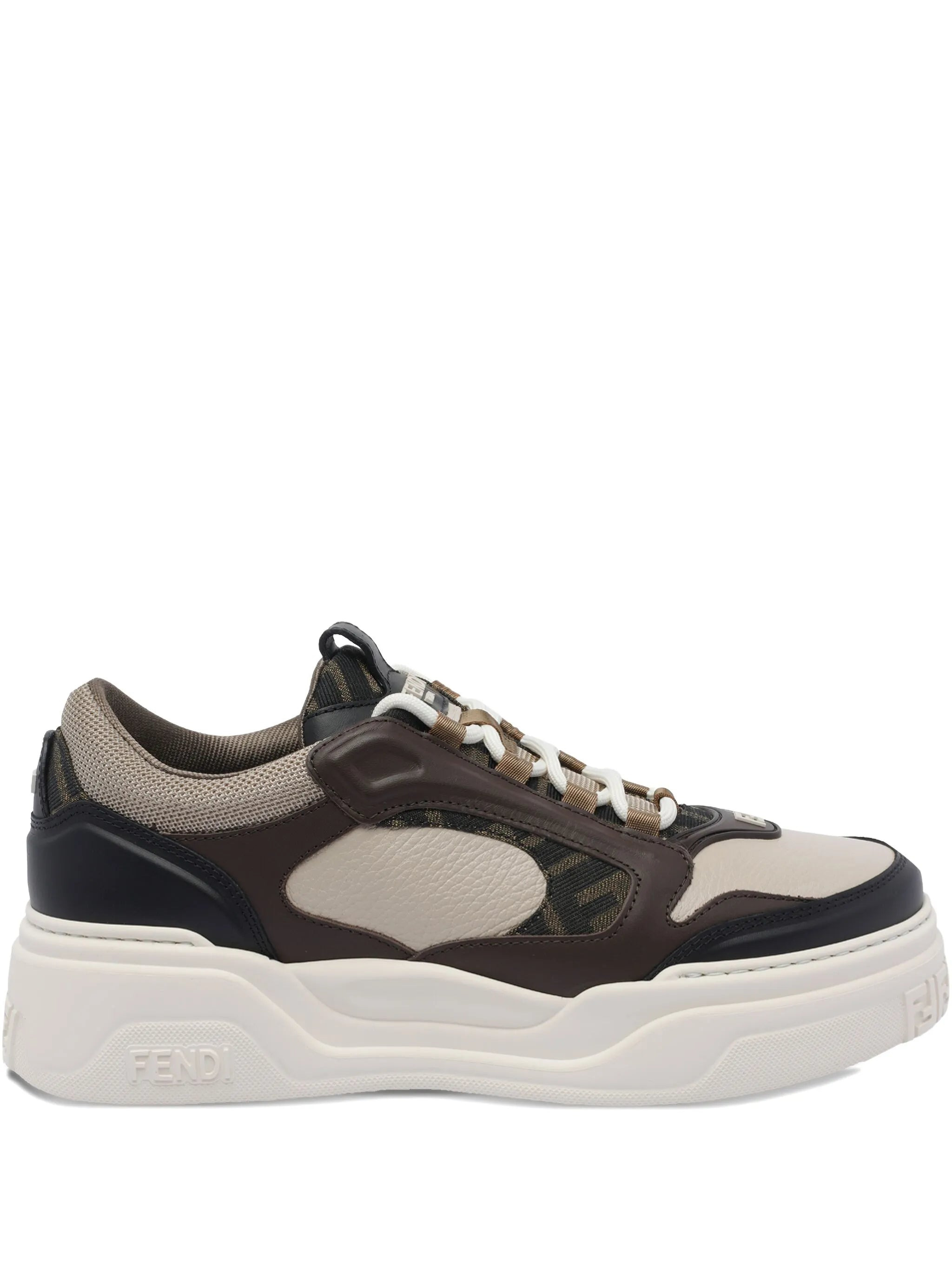 brown leather FF logo pattern lace-up fastening panelled design chunky platform sole - Color: BROWN/NEUTRALS - Made in: Italy - Designer Style ID: AU20 7E1728 F1T29 Composition and care Outer Composition Calf Leather: 100.0%, Sole Composition Rubber: 100.0%, Lining Composition Fabric: 100.0%