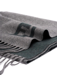 grey and green wool signature FF motif two-tone design fringed edge - Color: GREY/GREEN - Made in: Italy - Designer Style ID: AYBF FXS734 F1TTE Composition and care Wool: 100.0%