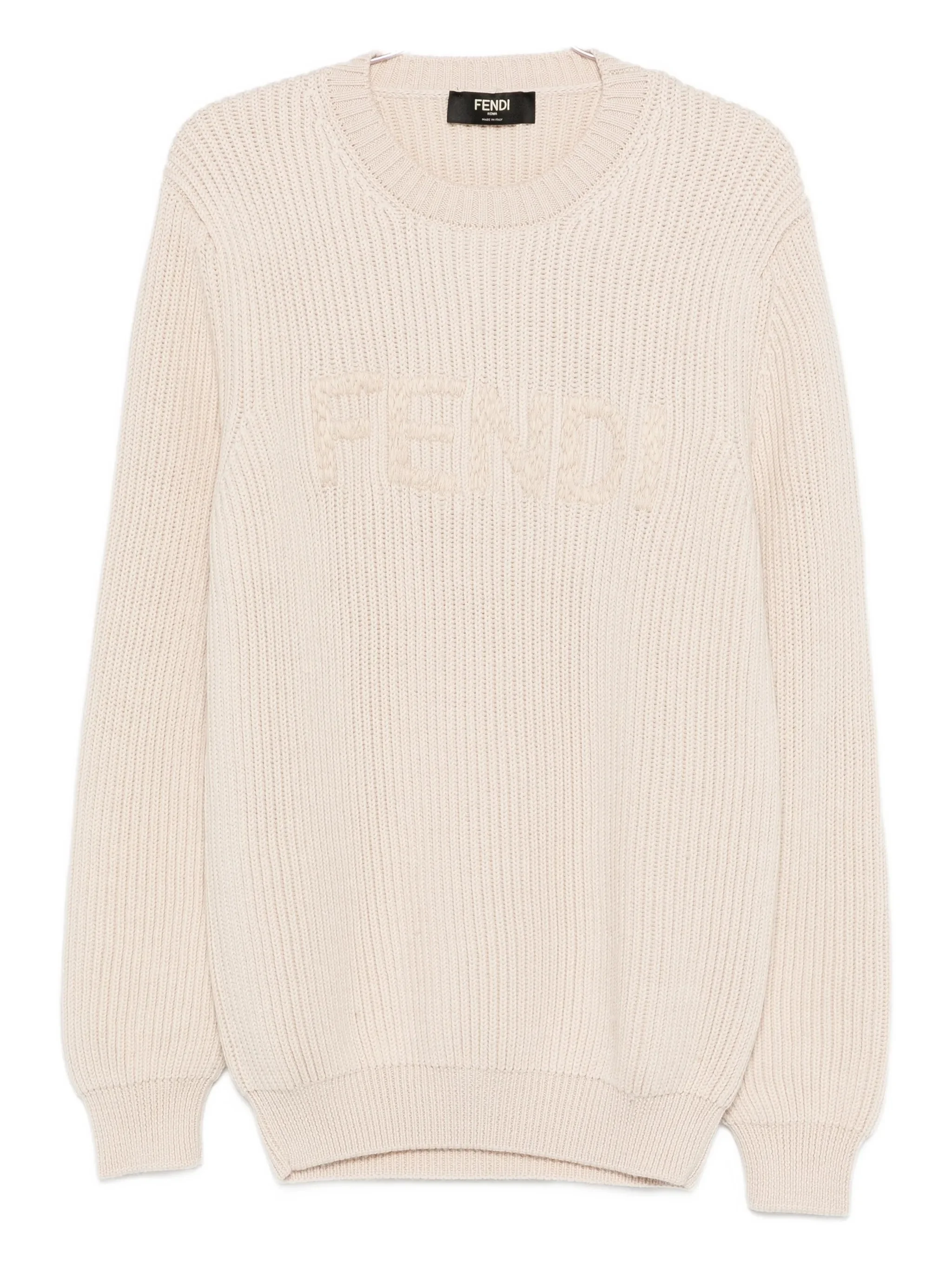cream logo detail round neck long sleeves ribbed knit - Color: NEUTRALS - Made in: Italy - Designer Style ID: AW0C FZX091 F1J2A Composition and care Outer Composition Virgin Wool: 100.0%