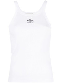 white cotton scoop neck embroidered logo at the chest straight hem - Color: WHITE - Made in: Italy - Designer Style ID: ANQM FS7966 F0ZNM Composition and care Cotton: 94.0%, Elastane: 6.0%