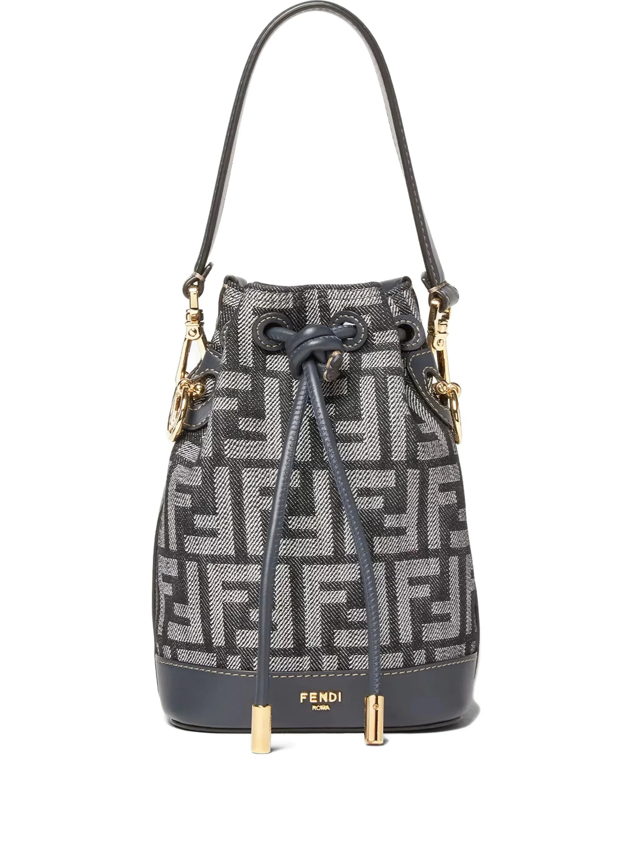 dark blue all-over logo pattern top handle drawstring fastening gold-tone hardware - Color: BLUE/GREY - Made in: Italy - Designer Style ID: AUT4 8BS109 F1UJ5 Composition and care Outer Composition Calfskin: 100.0%, Outer Composition Denim: 100.0%