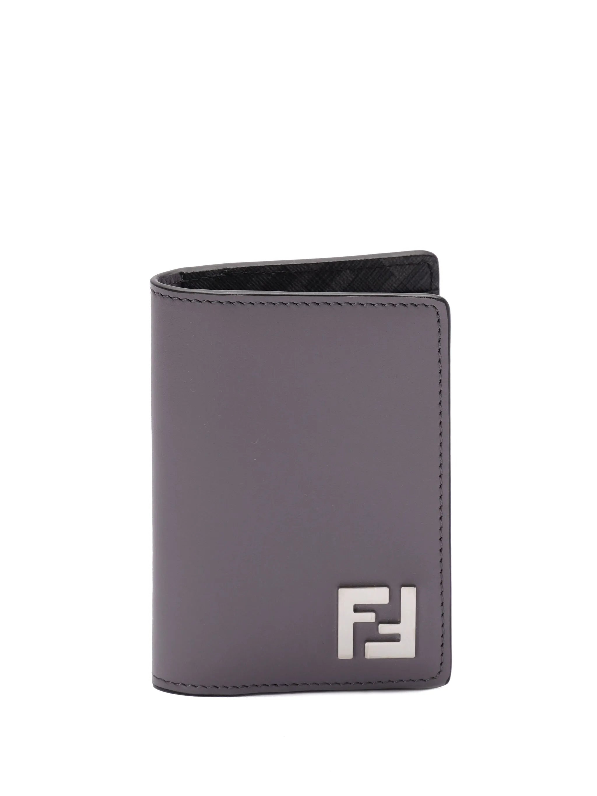 grey leather FF motif FF logo plaque silver-tone hardware internal card slots folded design - length: 11.0 centimetres, width: 7.5 centimetres - Color: GREY/BLACK - Made in: Italy - Designer Style ID: AFF2 7M0349 F07AL Composition and care Outer Composition Calf Leather: 100.0%, Outer Composition Canvas: 100.0%