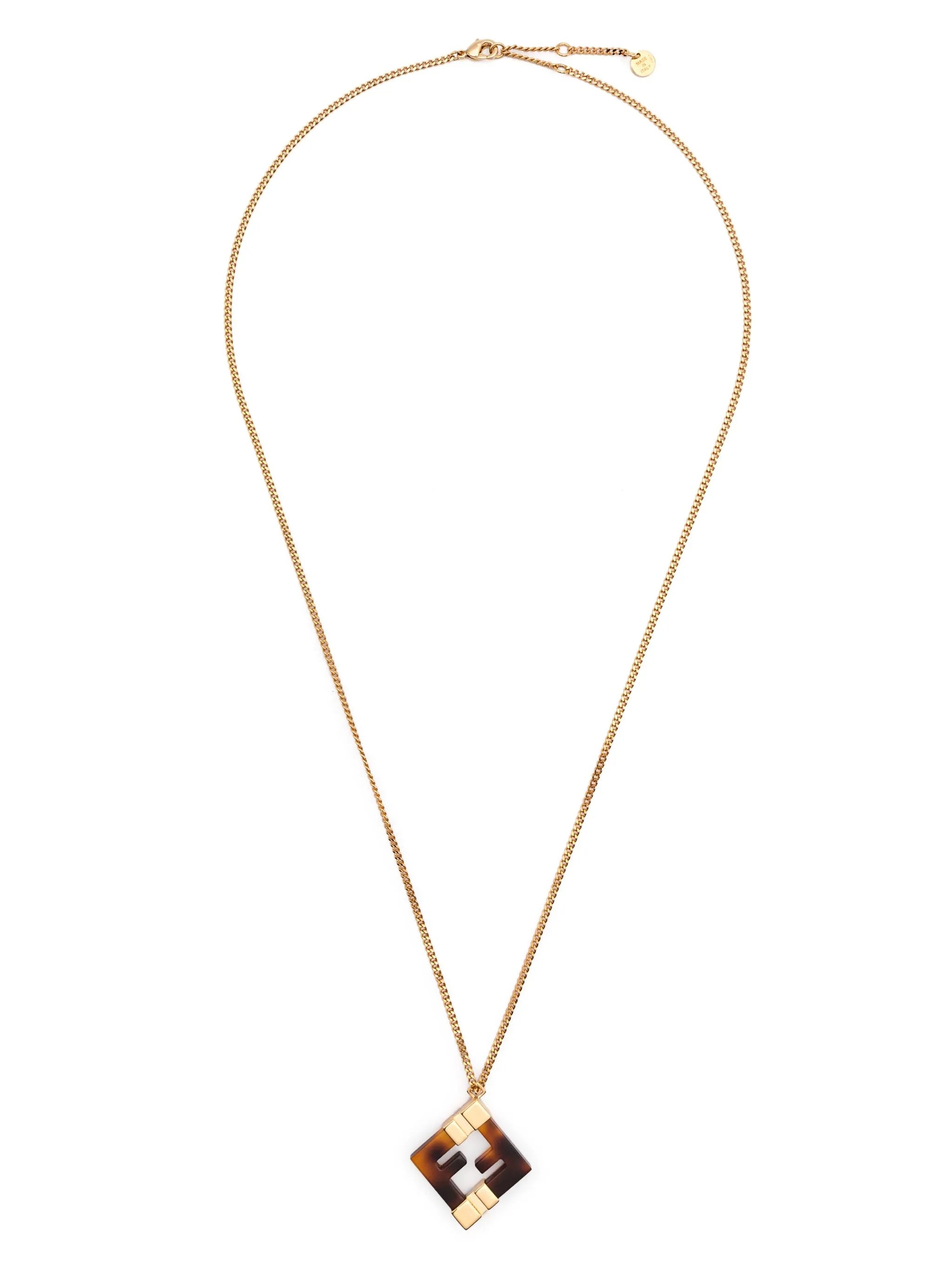 gold-tone lobster claw fastening adjustable-length chain tonal logo plaque - length when open: 60.5 centimetres, minimum length: 55.5 centimetres, pendant length: 3.3 centimetres, pendant width: 2.8 centimetres, width: 0.2 centimetres - Color: GOLD/BROWN - Made in: Italy - Designer Style ID: ALI0 8AK951 F1BDE Composition and care Brass: 100.0%