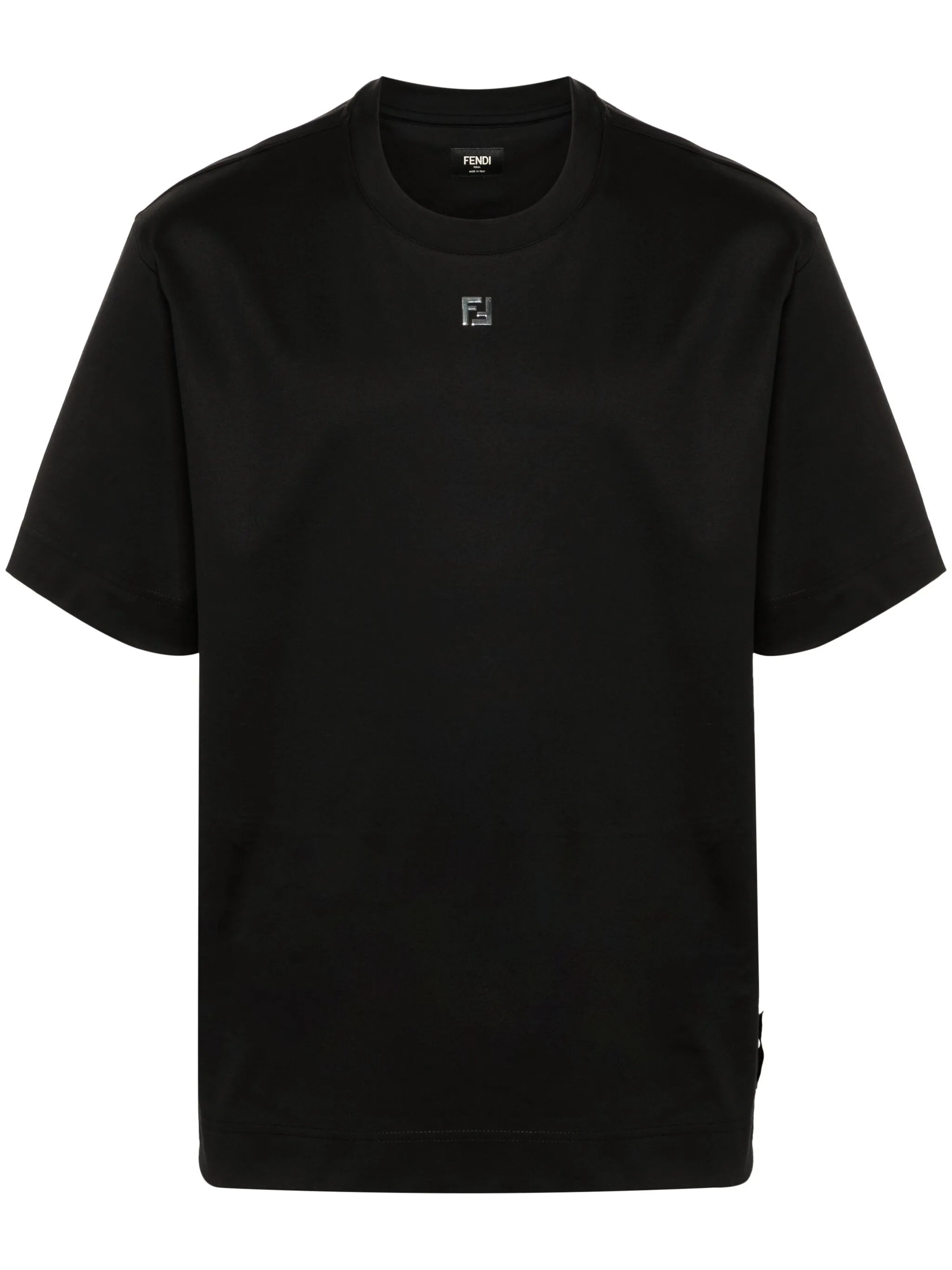 black cotton jersey texture crew neck short sleeves silver-tone FF logo plaque straight hem - Color: BLACK - Made in: Italy - Designer Style ID: ARYY FY0936 F0QA1 Composition and care Cotton: 100.0%