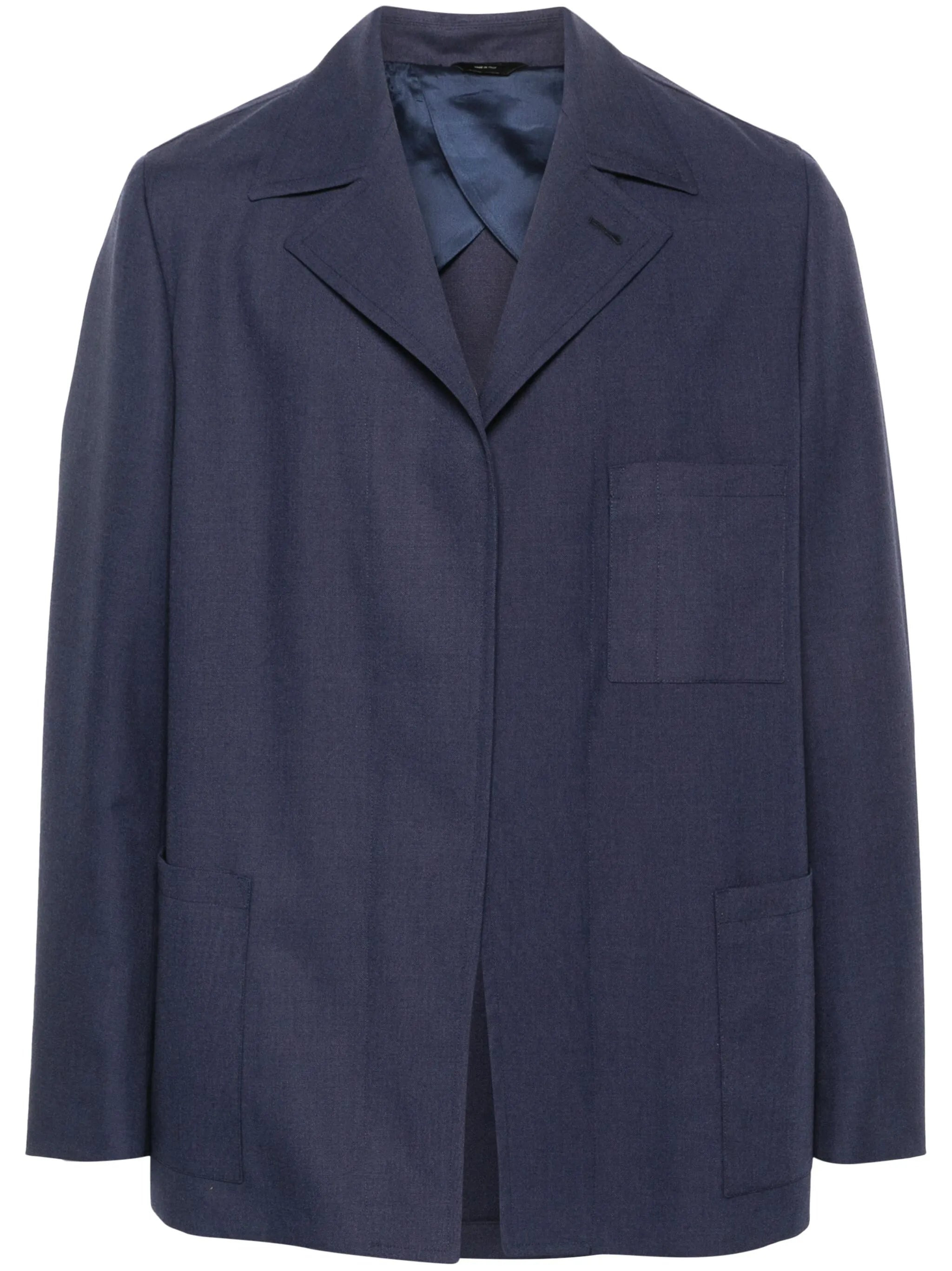 navy blue virgin wool notched lapels chest patch pocket long sleeves two front patch pockets strap detailing to the rear internal patch pocket partial lining concealed front button fastening - Color: BLUE - Made in: Italy - Designer Style ID: AR8S FJ0797 F04V6 Composition and care Lining Composition Viscose: 100.0%, Outer Composition Virgin Wool: 100.0%