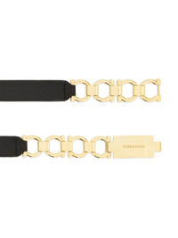 black gold-tone calf leather smooth grain Gancini plaque chain-link detailing engraved logo adjustable fit - width: 1.8 centimetres - Color: BLACK/GOLD - Made in: Italy - Designer Style ID: 230363 0780514- NENAB Composition and care Calfskin: 100.0%