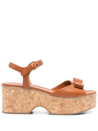 brown leather upper bow detail buckle ankle strap cork platform sole open toe - heel: 7.0 centimetres - Color: BROWN - Made in: Italy - Designer Style ID: 01J920 0782580 1C COGNA Composition and care Outer Composition Lamb Skin: 100.0%, Lining Composition Lamb Skin: 100.0%, Sole Composition Rubber: 100.0%
