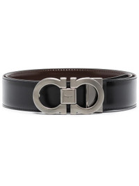 This black and brown Salvatore Ferragamo Gancini reversible leather belt boasts expert Italian craftsmanship. It features an adjustable length, a polished gunmetal tone buckle engraved with a brand logo, and a brown reverse side. We all know you have a black belt in shopping. This Salvatore Ferragamo accessory will mak - minimum length: 85.0 centimetres, total length: 95.0 centimetres, width: 3.5 centimetres - Color: BLACK - Made in: Italy - Designer Style ID: 679535- 0644557 NERO Composition and care Leather: 100%, Metal: 100%