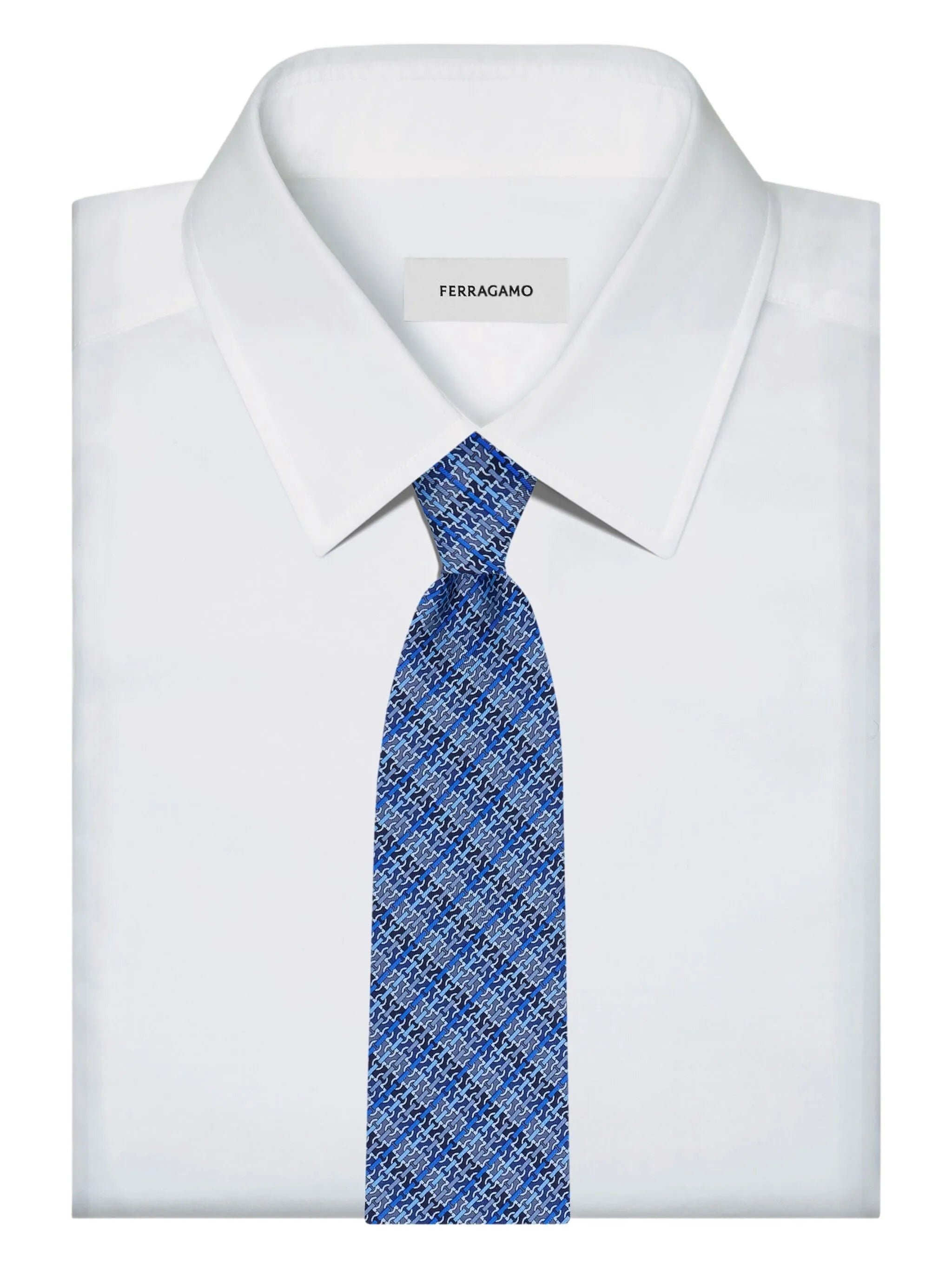 blue Gancini chain pattern narrow width pointed tip contrasting detailing - Color: BLUE - Made in: Italy - Designer Style ID: 351298 0786572 MARIN Composition and care Silk: 100.0%