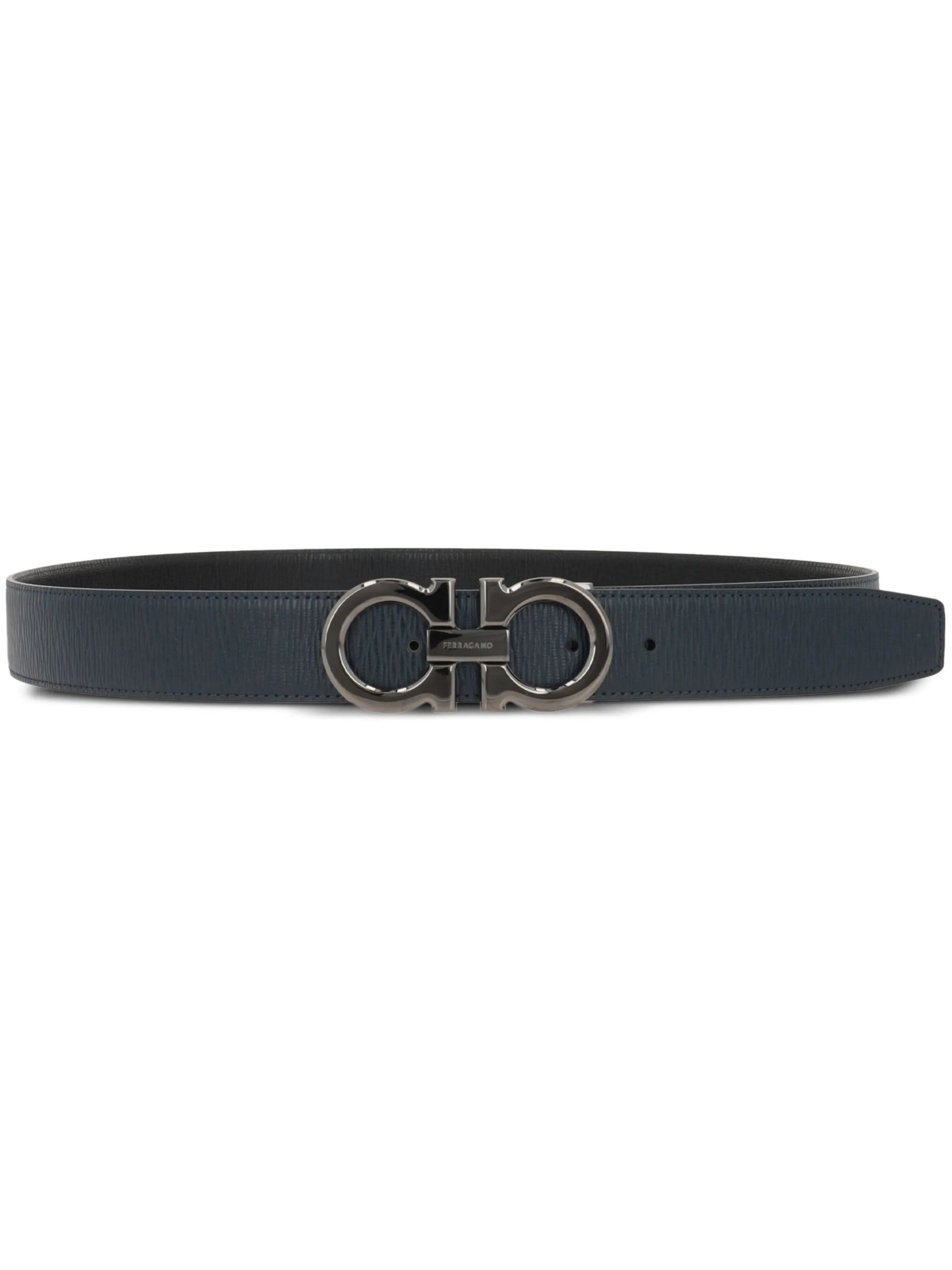 ocean blue black leather Gancini buckle logo-engraved silver-tone hardware punched holes adjustable fit pin fastening The engraved logo on the item you receive may differ slightly from the one pictured. - Color: BLACK/BLUE - Made in: Italy - Designer Style ID: 679710 0687611- NEBLU Composition and care Calf Leather: 100.0%