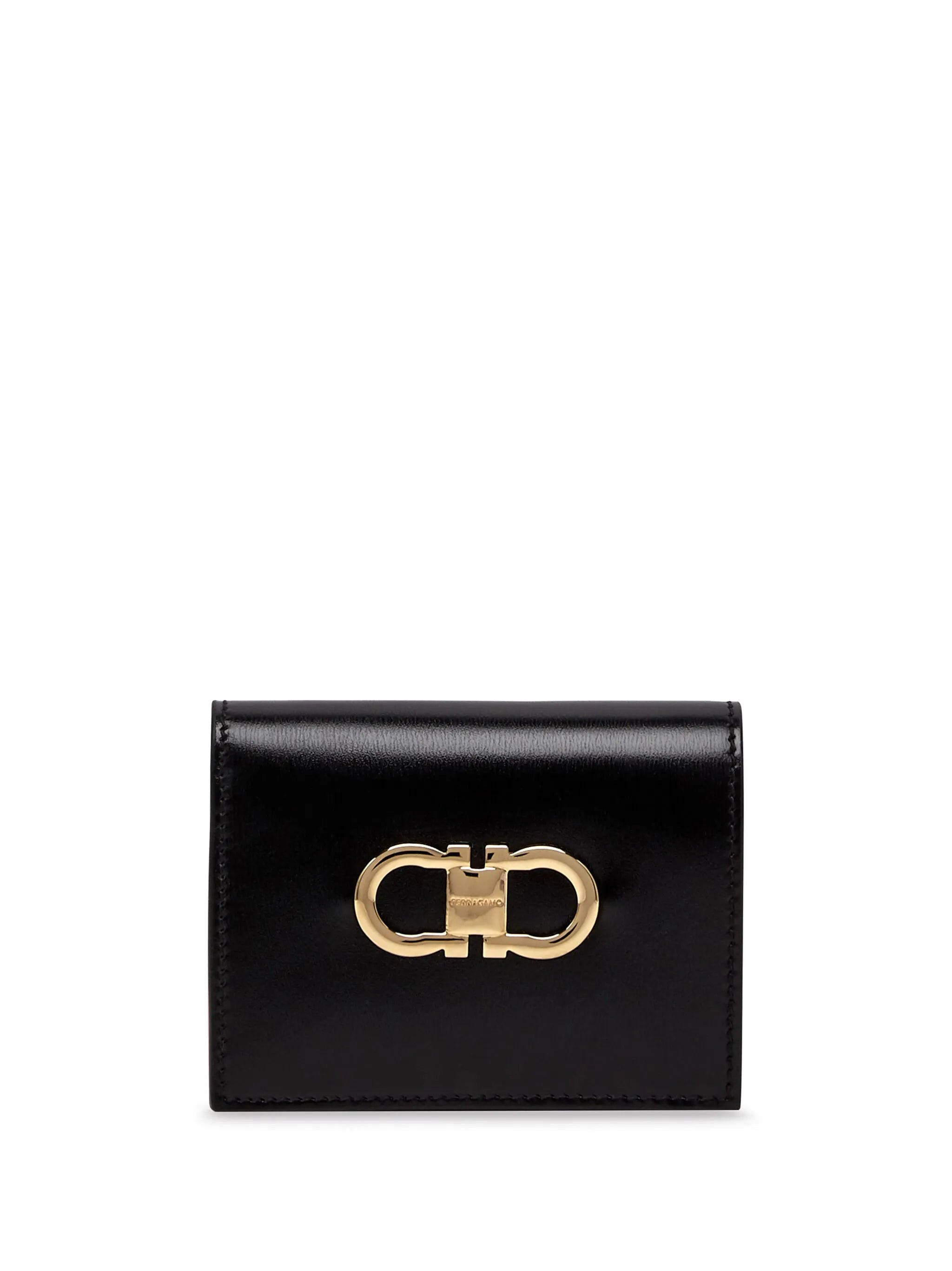 black calf leather bi-fold design gold-tone logo plaque press-stud fastening contrast lining internal logo stamp internal card slots - height: 8.5 centimetres, length: 11.0 centimetres - Color: BLACK/RED - Made in: Italy - Designer Style ID: 220627 0770769 NEFLA Composition and care Outer Composition Calfskin: 100.0%, Lining Composition Calfskin: 60.0%, Lining Composition Fabric: 40.0%