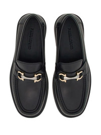 black calfskin Gancini plaque whipstitch detailing debossed logo to the rear slip-on style branded insole flat rubber sole - Color: BLACK - Made in: Italy - Designer Style ID: 022300 0768108 3E NERO Composition and care Outer Composition Calfskin: 100.0%, Lining Composition Calfskin: 88.0%, Lining Composition Goat Skin: 12.0%