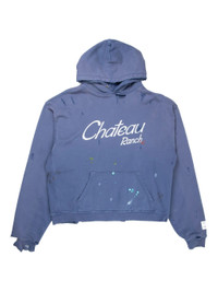 Chateau Ranch Distressed Paint-Splattered Logo-Print Supima Cotton-Jersey Hoodie Blue