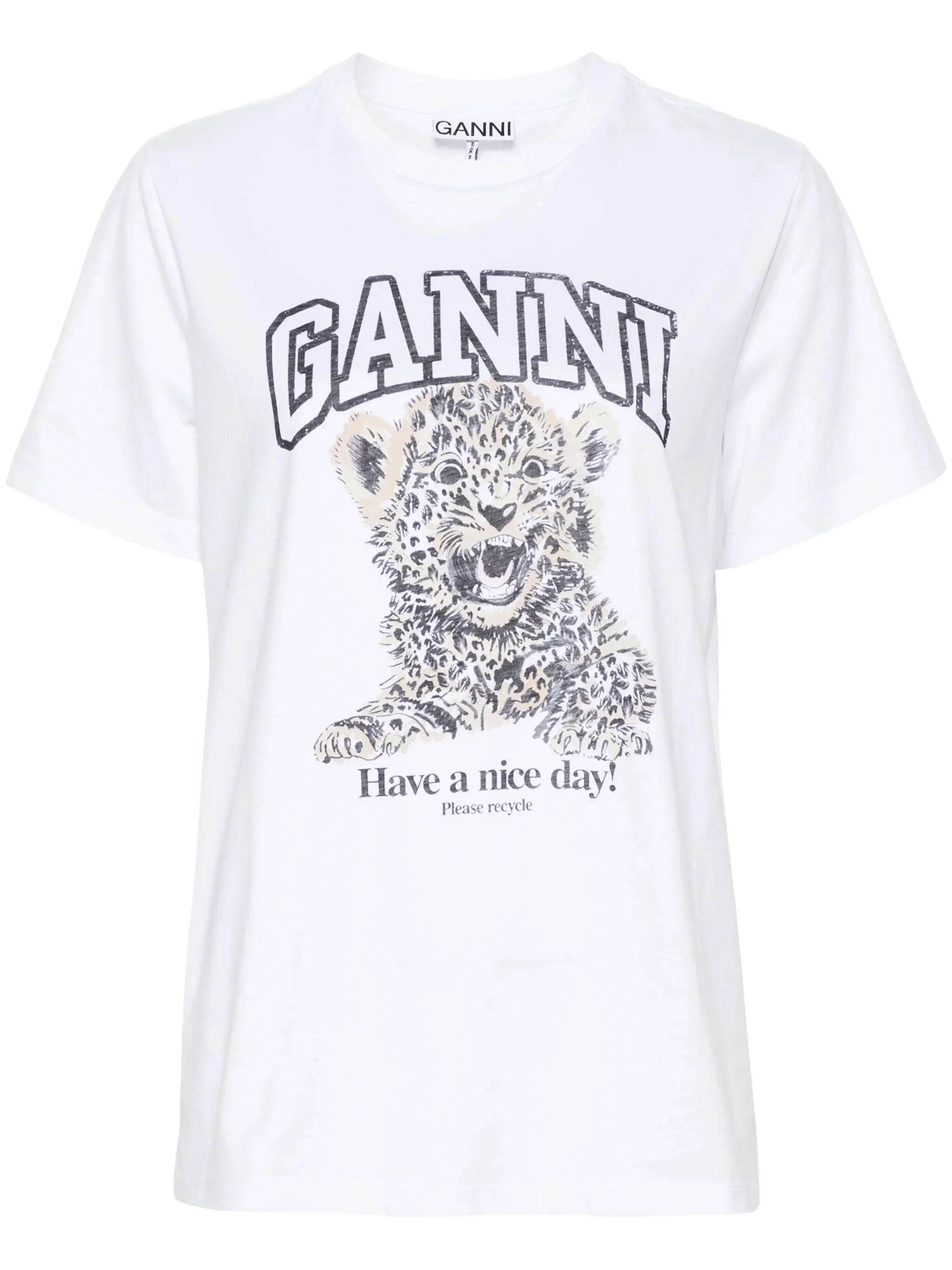 WHITE BASIC JERSEY LEOPARD RELAXED T-SHIRT