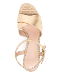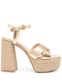 beige buckle-fastening ankle strap high block heel platform sole crossover strap detail - heel: 11.5 centimetres, platform: 4.0 centimetres - Color: NEUTRALS - Made in: Italy - Designer Style ID: G31522 MEKNA Composition and care Outer Composition Raffia: 100.0%, Outer Composition Calf Leather: 100.0%, Lining Composition Calf Leather: 100.0%, Sole Composition Calf Leather: 100.0%, Sole Composition Rubber: 100.0%