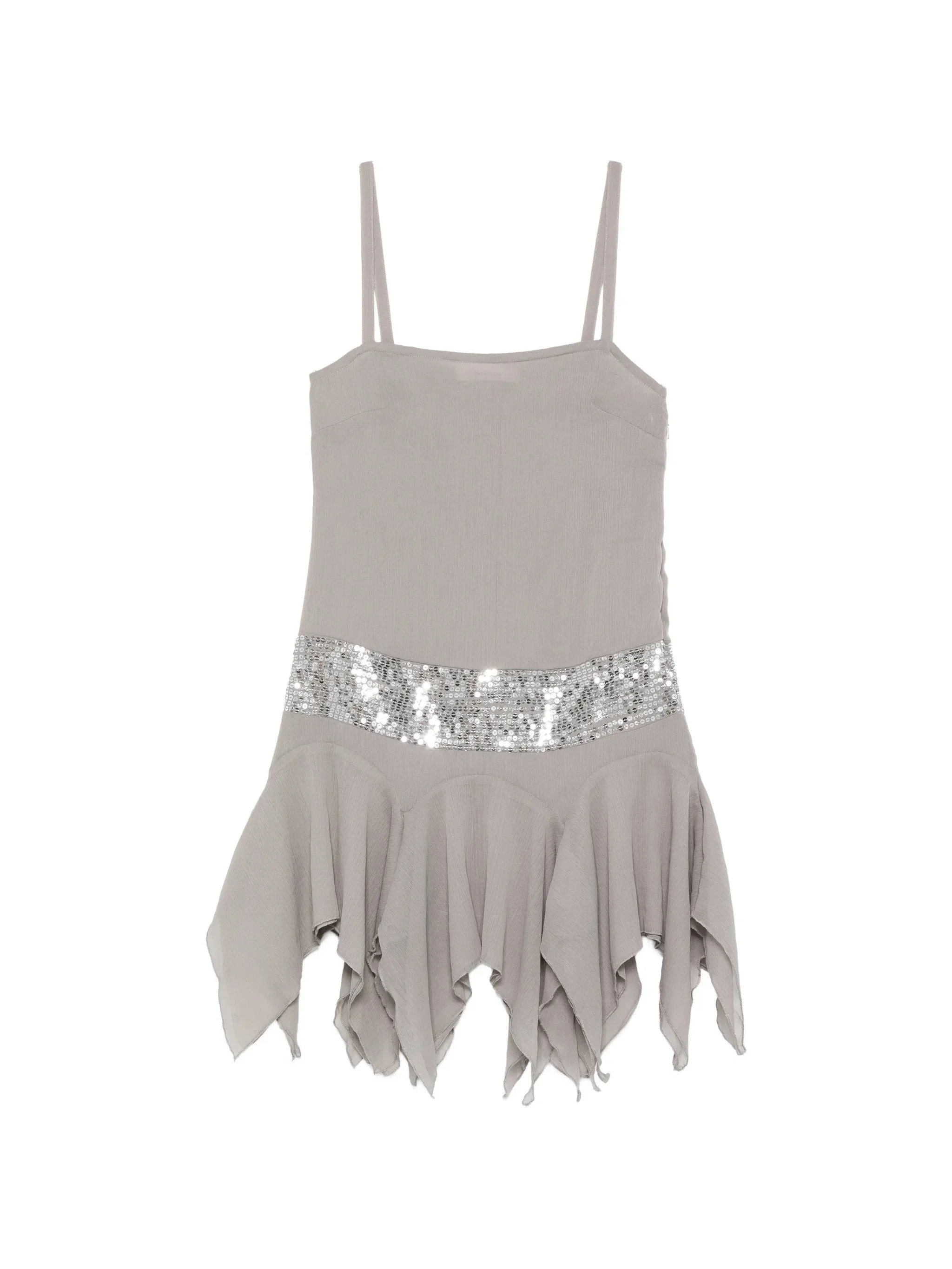 grey sequin embellishment square neck spaghetti straps mini length ruffled detail - Color: GREY - Made in: India - Designer Style ID: LEILA GREY Composition and care Polyester: 100.0%