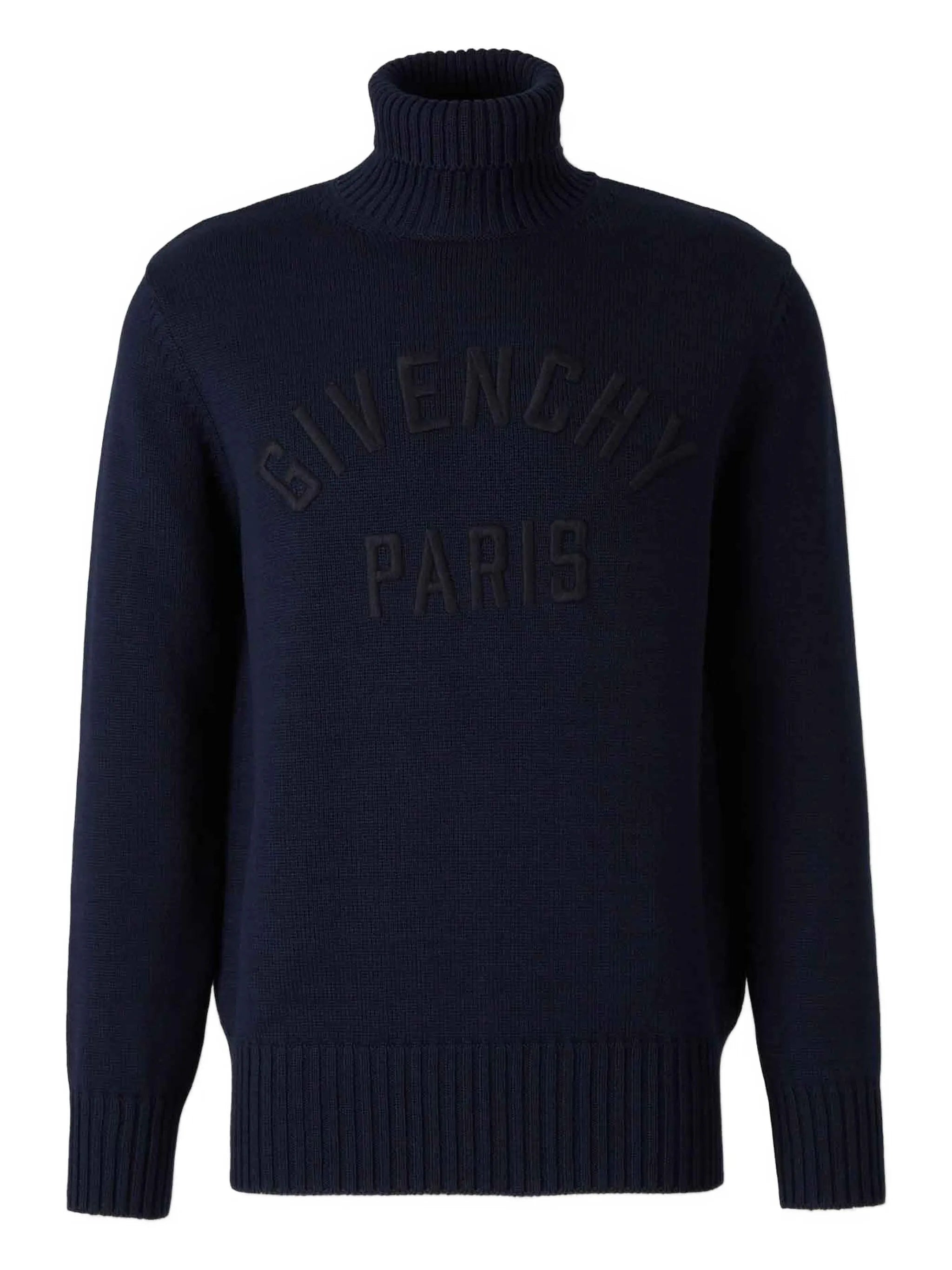 dark navy blue turtleneck ribbed trims embroidered logo long sleeves - Color: BLUE - Made in: Portugal - Designer Style ID: BM90VZ4YNM 499 Composition and care Cotton: 100.0%