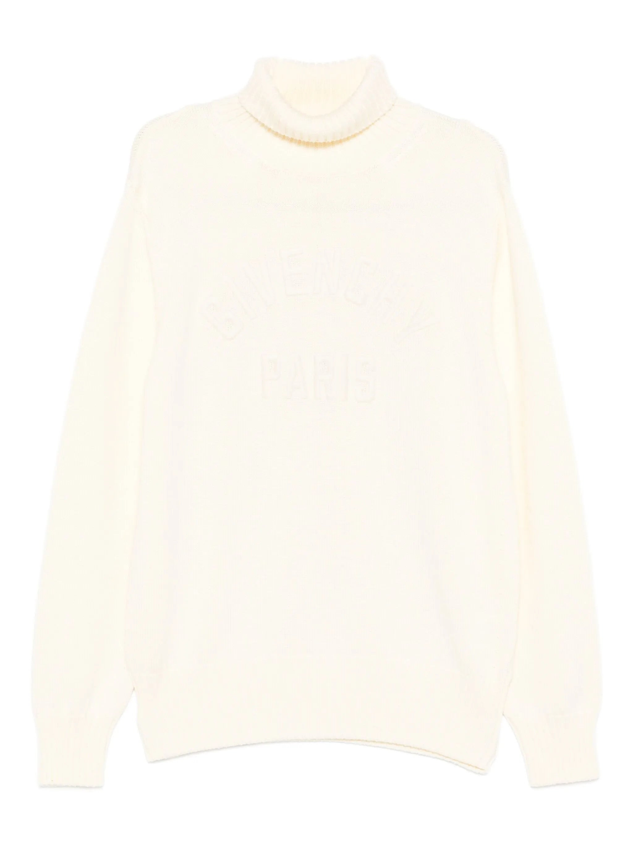 off-white turtleneck neckline Paris logo embroidery long sleeves ribbed cuffs - Color: NEUTRALS - Made in: Italy - Designer Style ID: BM90VZ4YNM 150 Composition and care Cotton: 100.0%