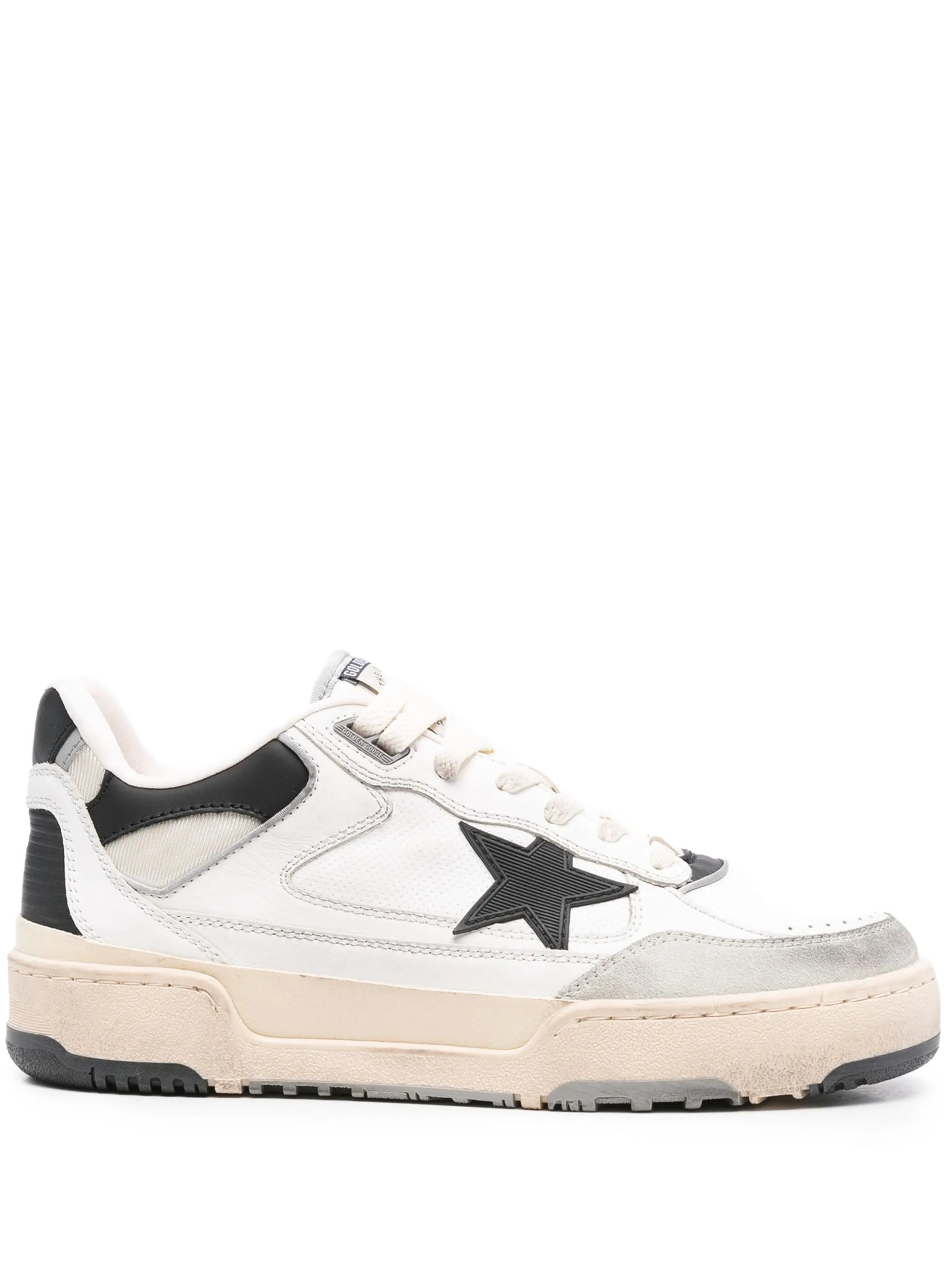 white/cedar brown buffalo leather distressed finish front lace-up fastening star patch detail logo patch at the tongue round toe flat rubber sole - Color: WHITE/BLACK - Made in: Italy - Designer Style ID: GMF00630 F005745 11395 Composition and care Lining Composition Cotton: 100.0%, Outer Composition Buffalo Leather: 100.0%, Sole Composition Rubber: 100.0%
