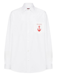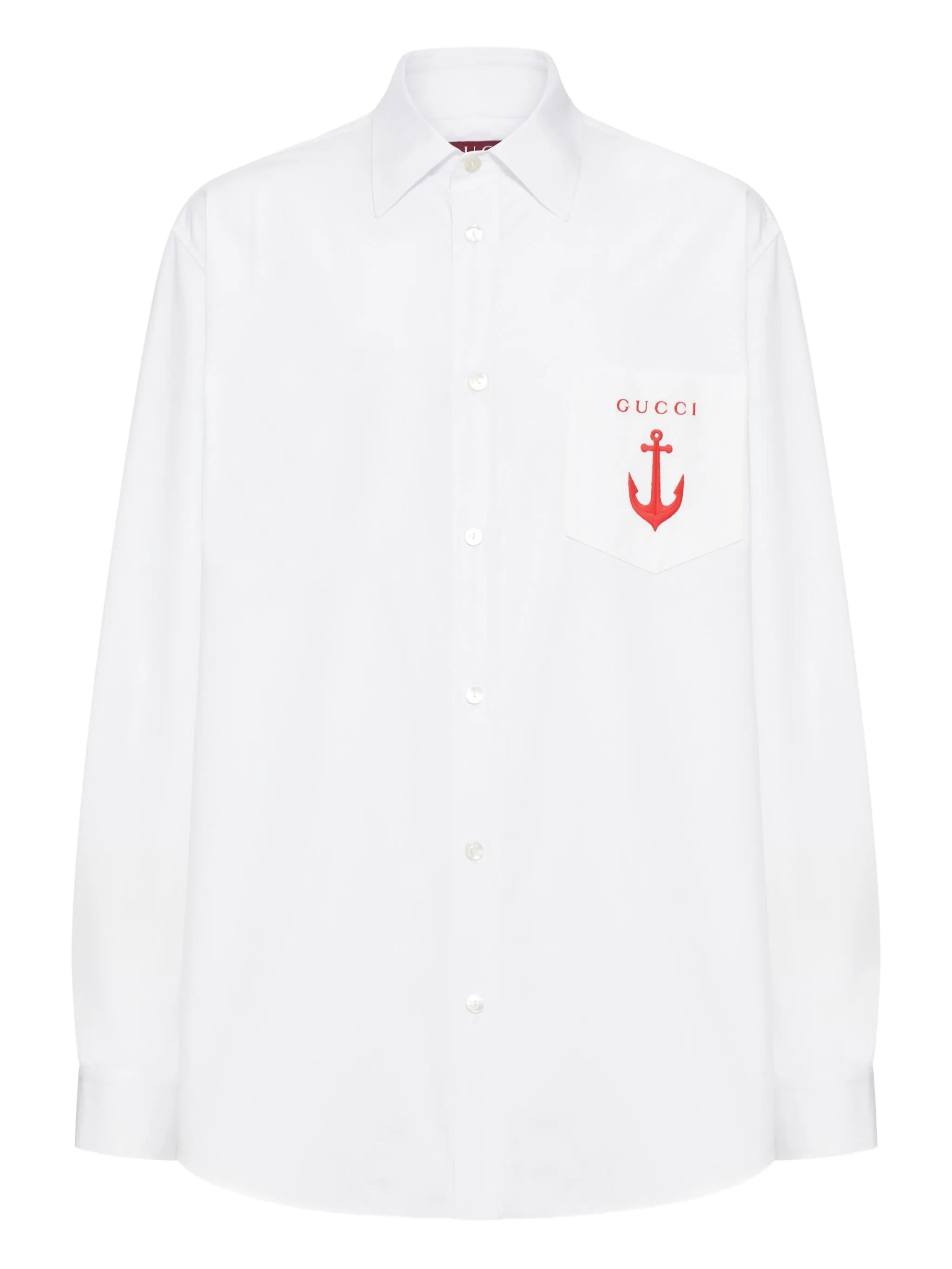 white cotton anchor embroidery chest pocket button fastening long sleeves - Color: WHITE - Made in: Italy - Designer Style ID: 833294 Z7AUX 9000 Composition and care Cotton: 100.0%