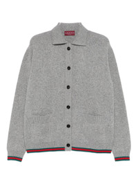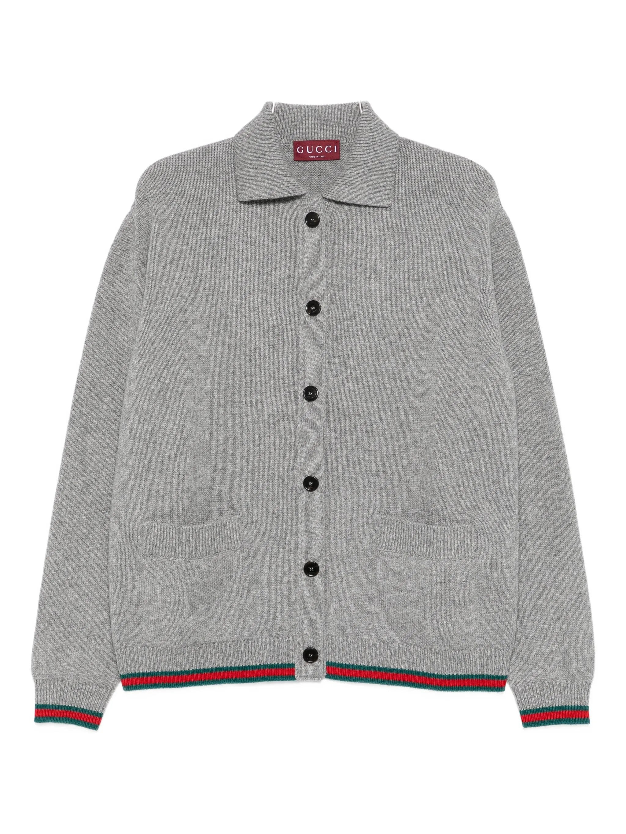 grey front button fastening two front patch pockets striped hem polo collar long sleeves - Color: GREY - Made in: Italy - Designer Style ID: 848257 XKE92 1084 Composition and care Cashmere: 100.0%, Wool: 100.0%