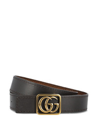 brown and black smooth finish double G hardware contrast stitching buckle fastening adjustable fit - Color: BROWN/BLACK - Made in: Italy - Designer Style ID: 854724 CAABE 2141 Composition and care Calfskin: 100.0%