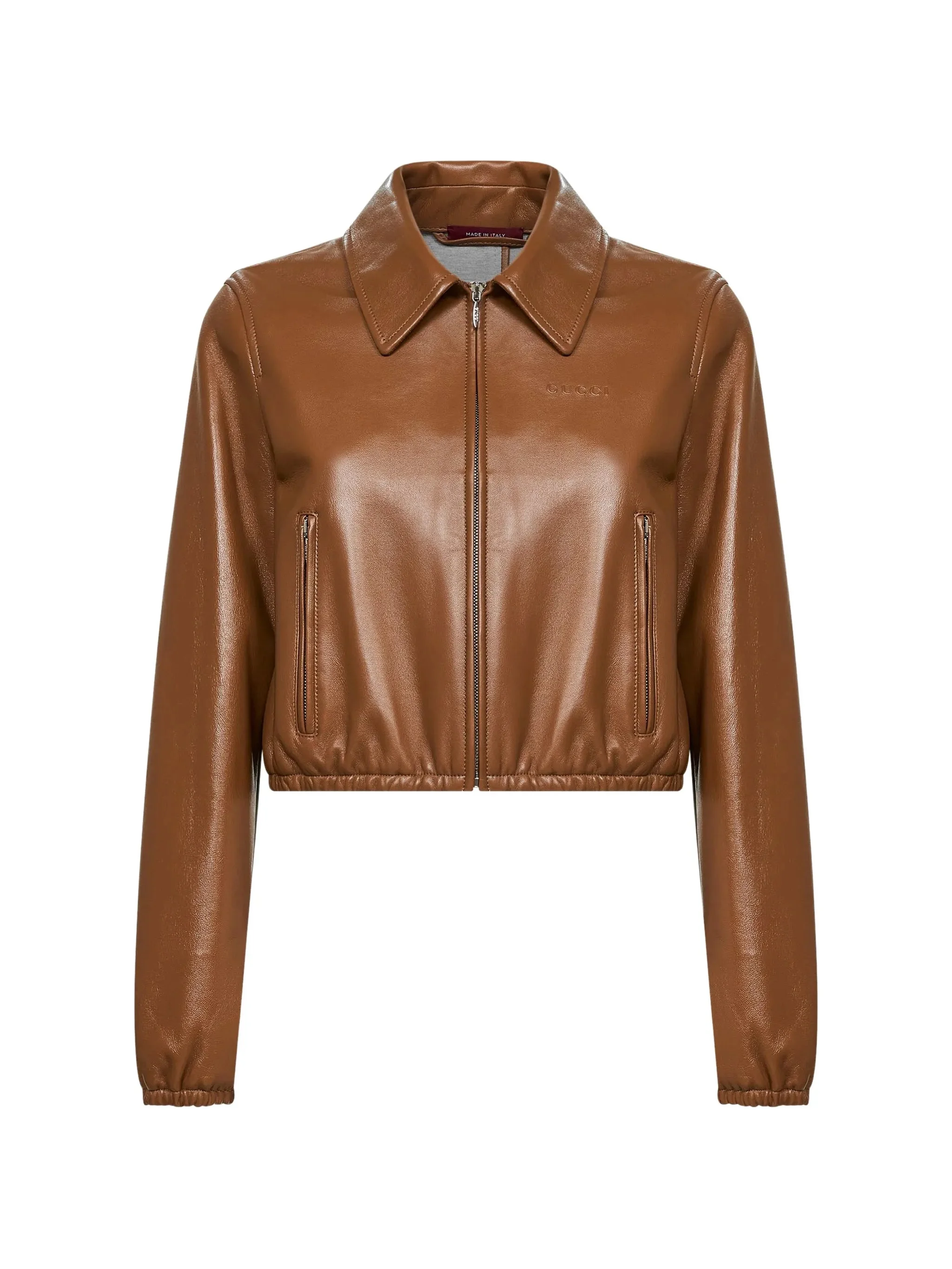 brown lambskin shirt collar front zip-up closure elasticated cuffs and hem side zipped welt pockets - Color: BROWN - Made in: Italy - Designer Style ID: 852289 XNBBW 2006 Composition and care Lining Composition Cotton: 100.0%, Outer Composition Lambskin: 100.0%