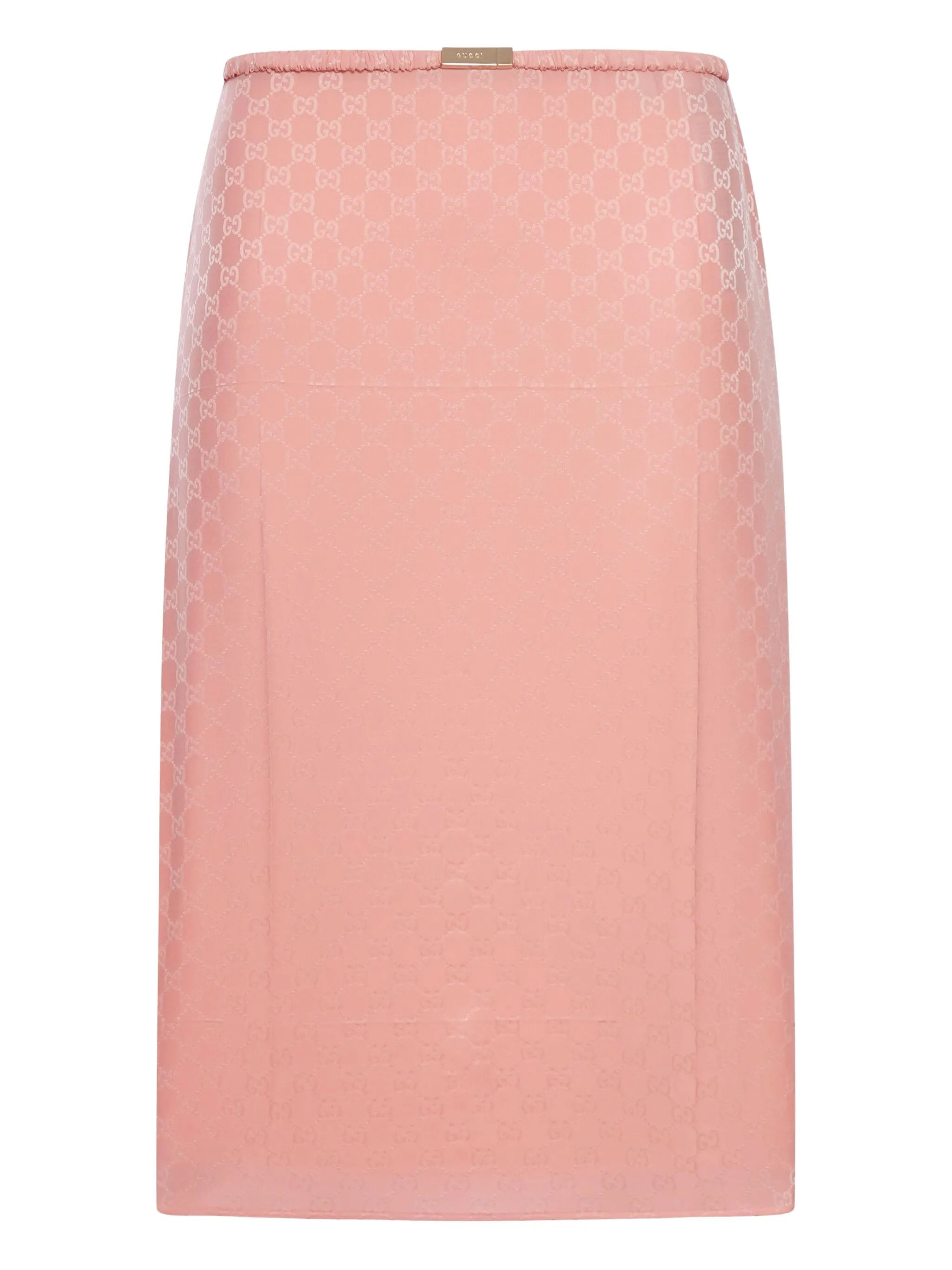 pink logo jacquard elasticated ruched waistband rear vent rear zip fastening - Color: PINK - Made in: Italy - Designer Style ID: 846275 ZATF9 5136 Composition and care Silk: 100.0%