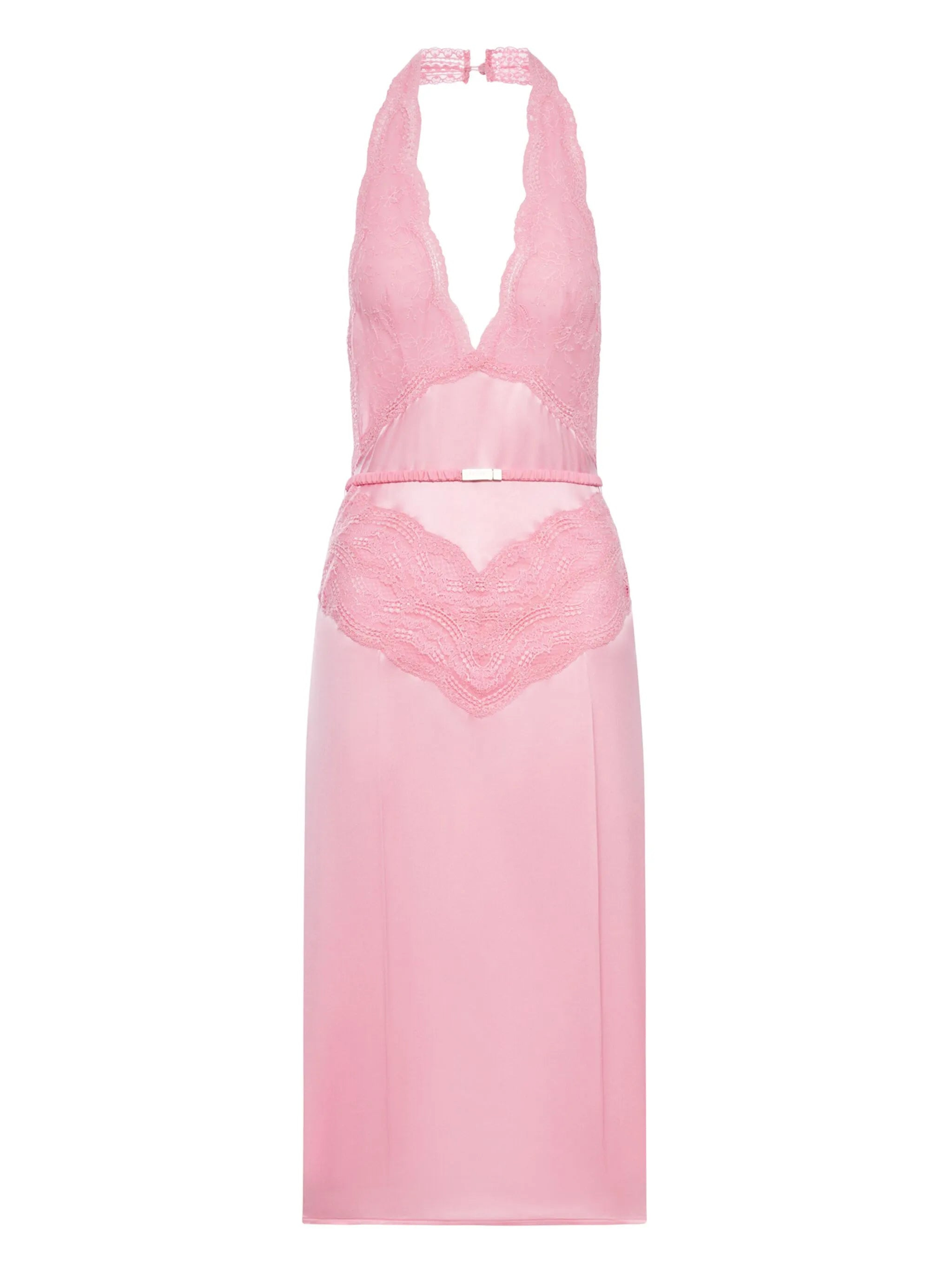 blushy pink lace trim halterneck removable elasticated belt metal buckle back opening - Color: PINK - Made in: Italy - Designer Style ID: 839410 XUAM6 5426 Composition and care Silk: 100.0%