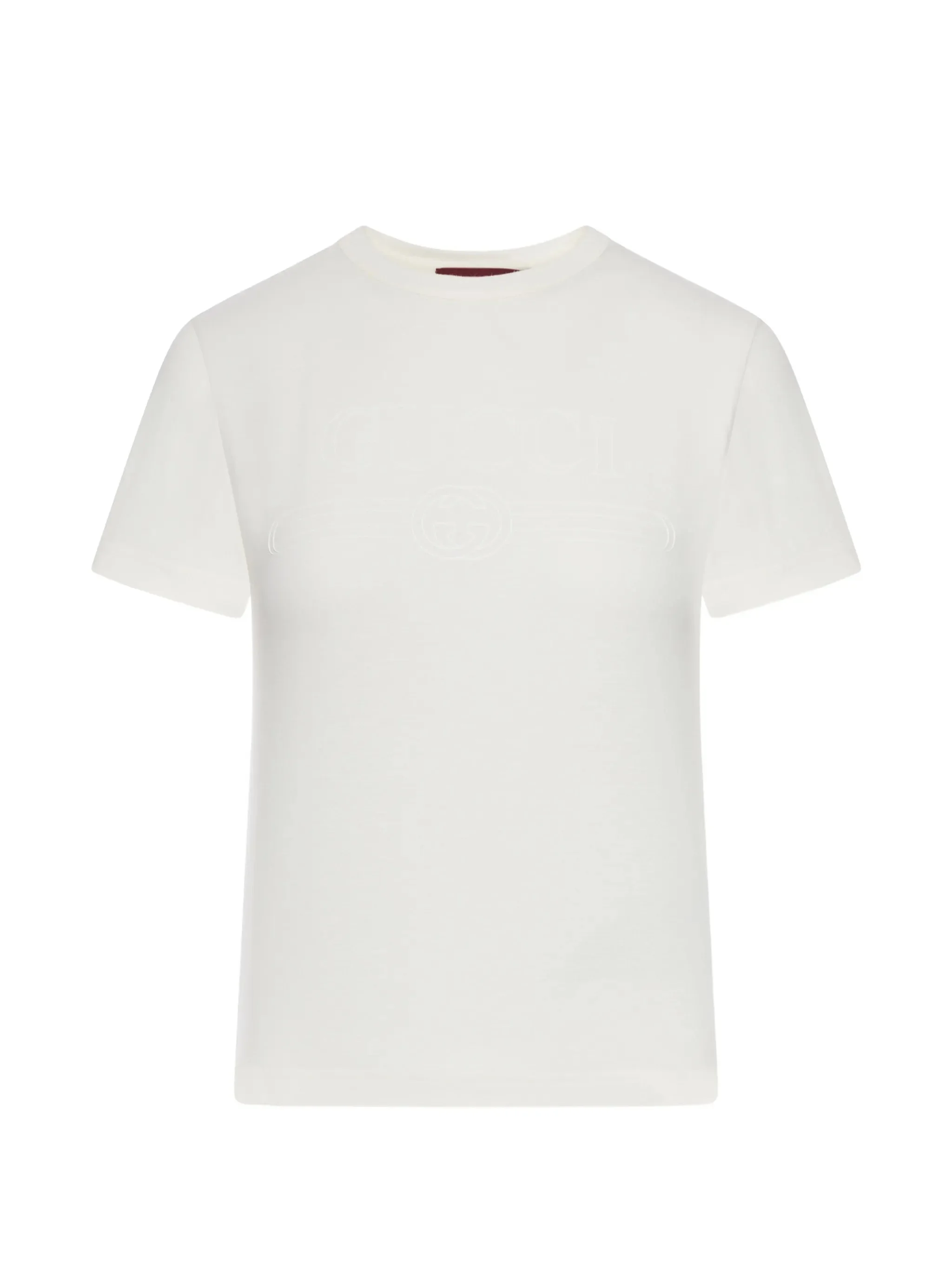milk white logo detail round neck short sleeves - Color: NEUTRALS - Made in: Italy - Designer Style ID: 805285 XJHQ1 9750 Composition and care Cotton: 100.0%