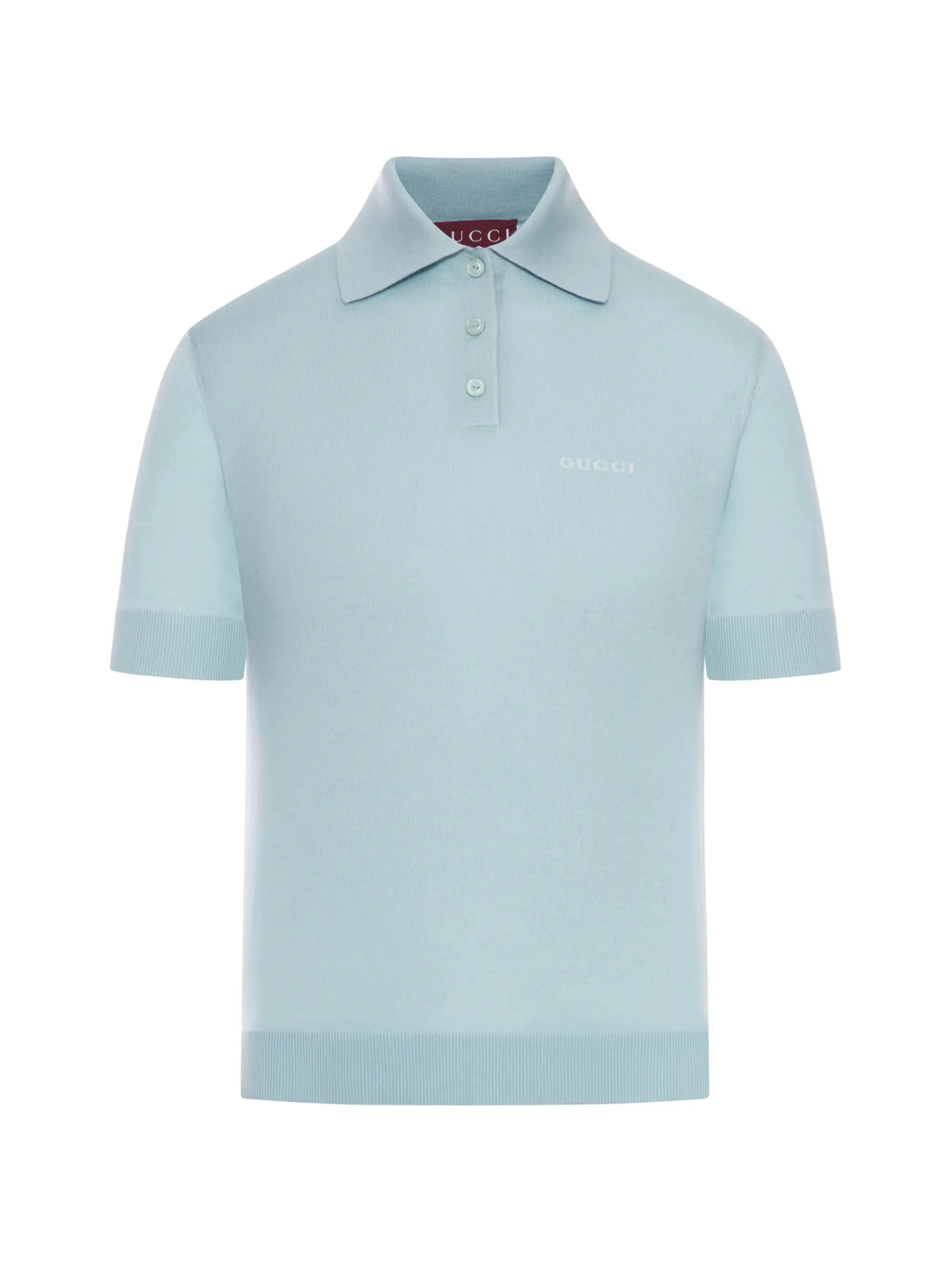 blue button fastening short sleeves straight hem embroidered logo - Color: BLUE - Made in: Italy - Designer Style ID: 851969 XKEWD 3910 Composition and care Silk: 50.0%, Wool: 50.0%