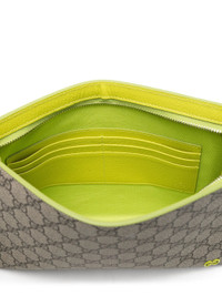 beige classic GG canvas top zip fastening internal card slots - depth: 6.0 centimetres, height: 18.0 centimetres, width: 26.0 centimetres - Color: NEUTRALS/BROWN - Made in: Bangladesh - Designer Style ID: 768255 FACQC 9742 Composition and care Outer Composition Calf Leather: 100.0%
