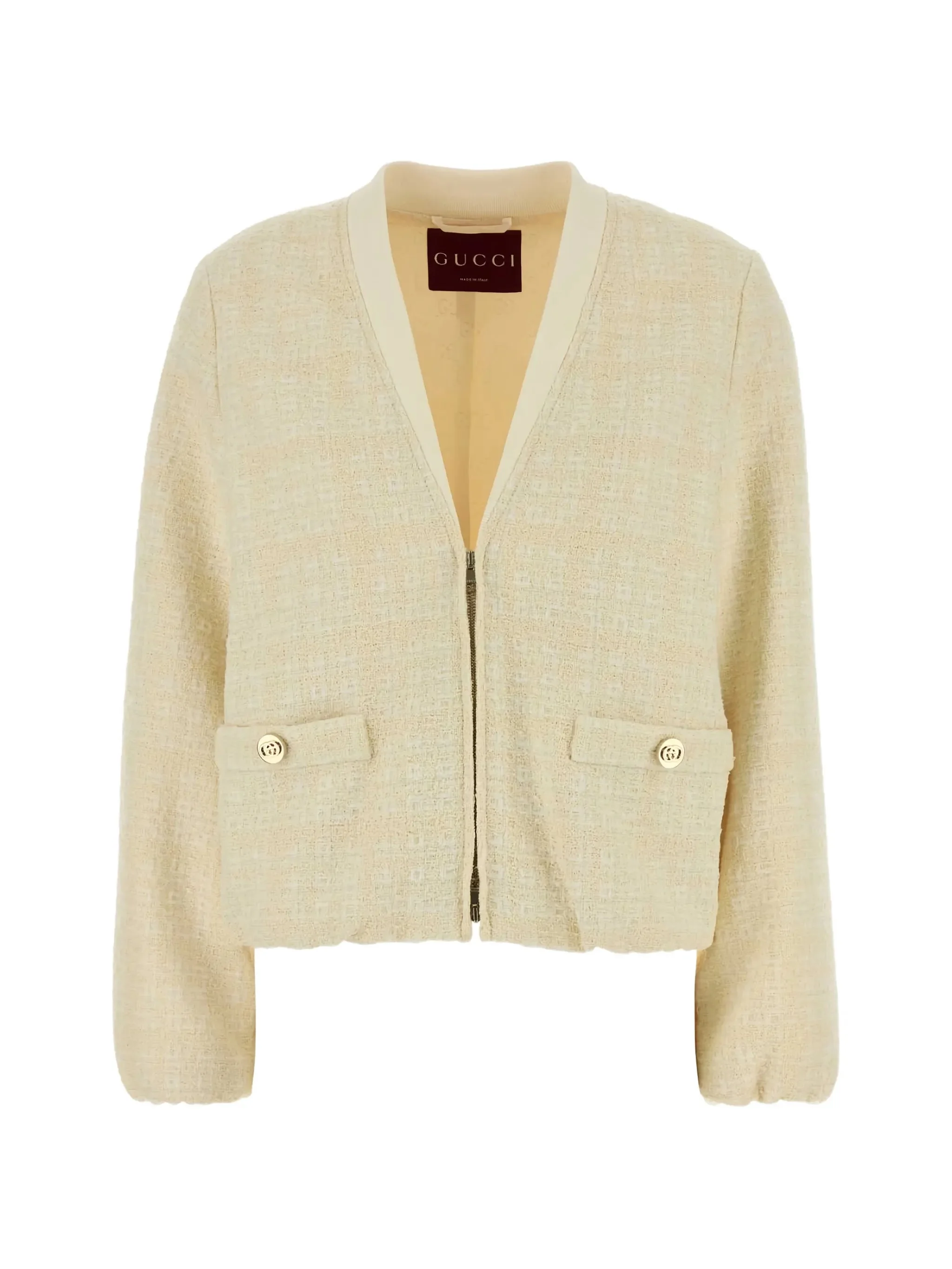ivory tweed effect round neck front zip-fastening chest welt-pocket long sleeves - Color: NEUTRALS - Made in: Italy - Designer Style ID: 851888 ZAUB6 9777 Composition and care Outer Composition Cotton: 53.0%, Outer Composition Polyamide: 30.0%, Lining Composition Viscose: 100.0%, Outer Composition Wool: 17.0%