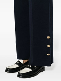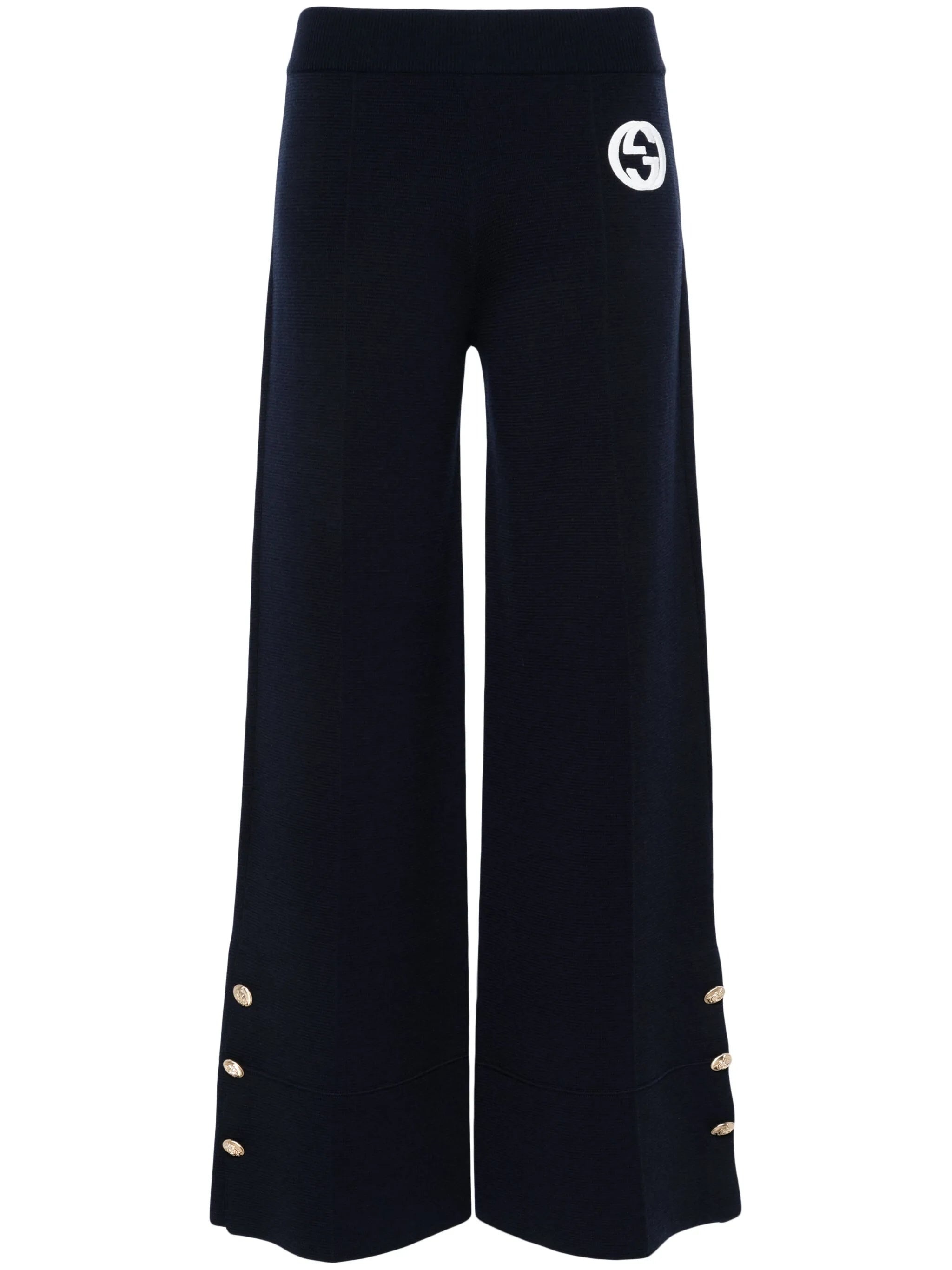 navy blue wool blend waffle knit signature Interlocking G logo patch to the front pressed crease side slits with decorative button detailing embossed gold-tone buttons wide leg elasticated waistband - Color: BLUE - Made in: Italy - Designer Style ID: 773119 XKDQS 4417 Composition and care Polyamide: 50.0%, Wool: 50.0%