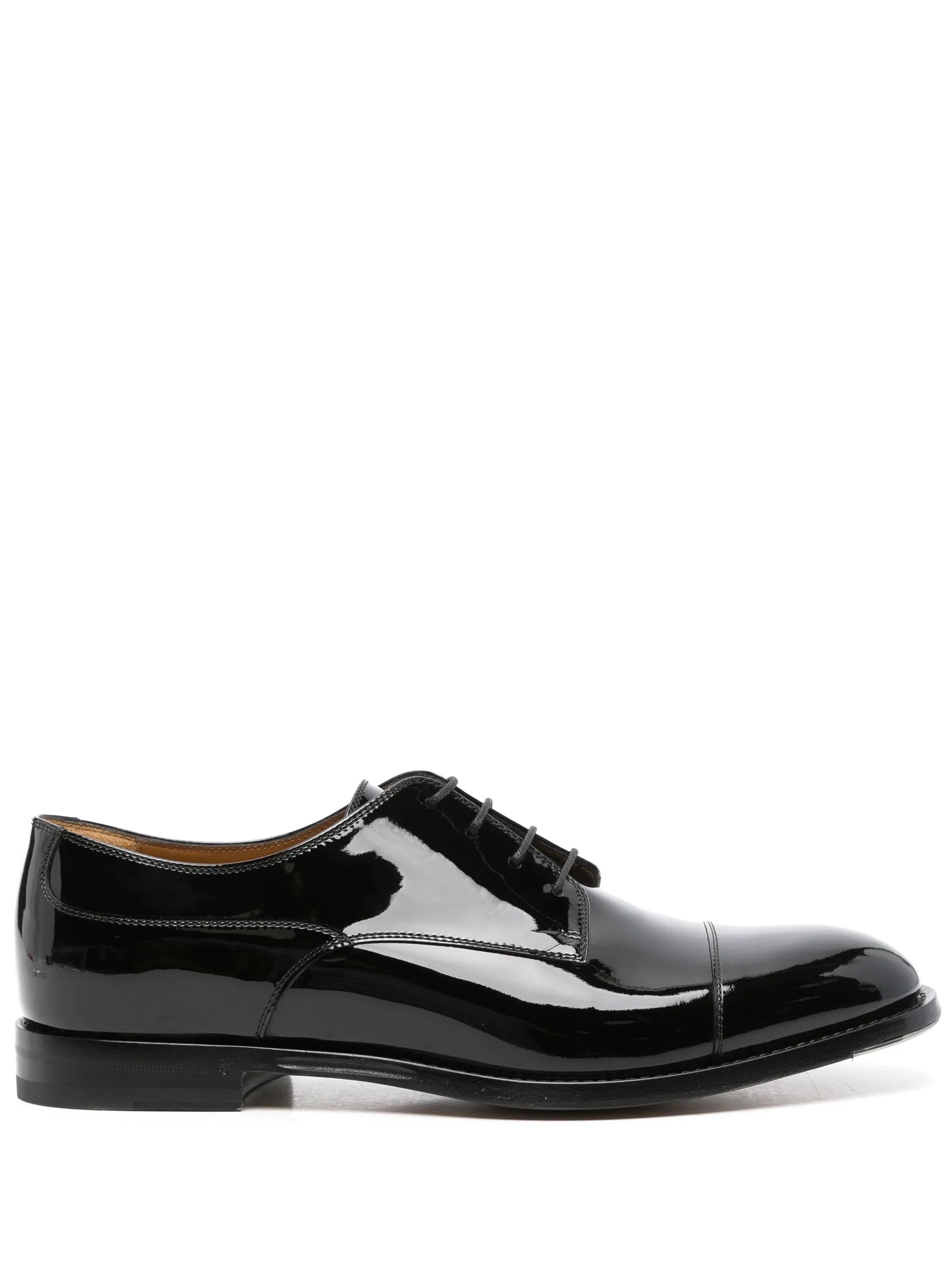 black calf leather patent finish panelled design round toe branded insole leather outsole front lace-up fastening - heel: 2.0 centimetres, sole height: 1.0 centimetres - Color: BLACK - Made in: Italy - Designer Style ID: 791590 BNC00 1000 Composition and care Lining Composition Calf Leather: 100.0%, Sole Composition Calf Leather: 100.0%, Outer Composition Patent Calf Leather: 100.0%