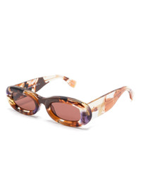 Havana brown UV-protective lenses curved tips logo print at the arm These glasses come with a protective case. - arm length: 14.5 centimetres, bridge width: 2.3 centimetres, lens diameter: 4.8 centimetres, total width: 14.0 centimetres - Color: BROWN - Made in: Italy - Designer Style ID: 819573 J0765 2323 Composition and care Recycled Acetate: 100.0%