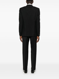black mohair-wool blend interwoven design satin trim Jacket: front button fastening peak lapels shoulder pads long sleeves faux-buttoned cuffs chest welt pocket dart detailing two front flap pockets American rear vent two internal jetted pockets full lining straight hem Trousers: concealed front button, hook and zip fa - Color: BLACK - Made in: Italy - Designer Style ID: 794624 Z592B 1000 Composition and care Outer Composition Silk: 100.0%, Lining Composition Cotton: 100.0%, Lining Composition Cupro: 100.0%, Lining Composition Viscose: 100.0%, Outer Composition Mohair: 60.0%, Outer Composition Wool: 40.0%