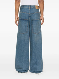 indigo blue cotton washed denim logo patch to the rear belt loops concealed front button fastening wide leg raw-cut hem classic five pockets - Color: BLUE - Made in: Italy - Designer Style ID: 758153 XDCU0 4011 Composition and care Outer Composition Cotton: 100.0%, Lining Composition Cotton: 35.0%, Lining Composition Polyester: 65.0%