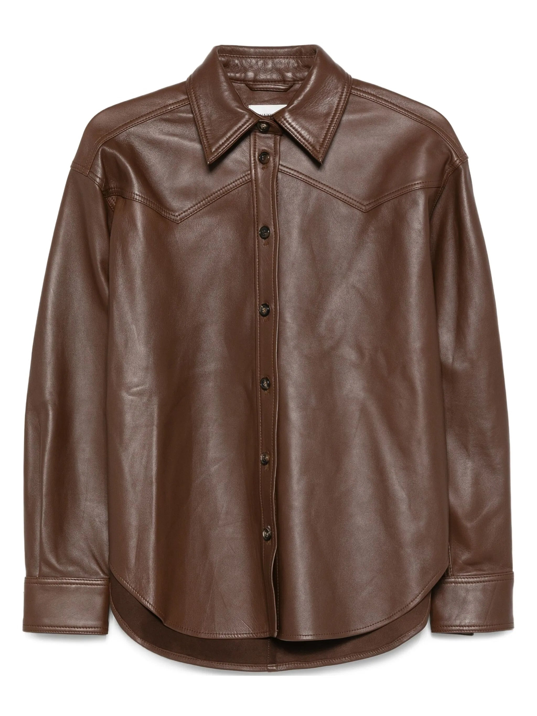 chocolate brown front button fastening classic collar long sleeves - Color: BROWN - Made in: India - Designer Style ID: HEW06089 PL002TP C0039 Composition and care Calf Leather: 100.0%