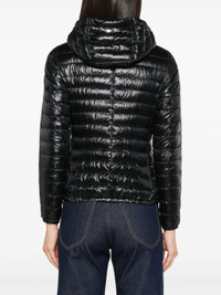 black feather down padded design quilted gold-tone logo plaque logo-engraved gold-tone hardware detachable drawstring hood front two-way zip fastening long sleeves elasticated cuffs two side zip-fastening pockets elasticated hem quilted lining - Color: BLACK - Made in: Romania - Designer Style ID: 12017Z PI0005DIC 9300 Composition and care Lining Composition Feather Down: 100.0%, Outer Composition Polyamide: 100.0%, Lining Composition Polyamide: 100.0%