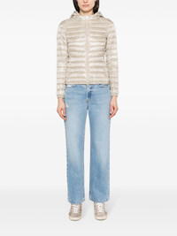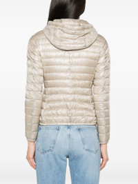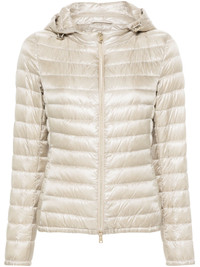ecru feather down padded design quilted gold-tone logo plaque logo-engraved gold-tone hardware detachable drawstring hood front two-way zip fastening long sleeves elasticated cuffs two side zip-fastening pockets elasticated hem quilted lining - Color: NEUTRALS - Made in: Romania - Designer Style ID: 12017Z PI0005DIC 1985 Composition and care Lining Composition Feather Down: 100.0%, Outer Composition Polyamide: 100.0%, Lining Composition Polyamide: 100.0%